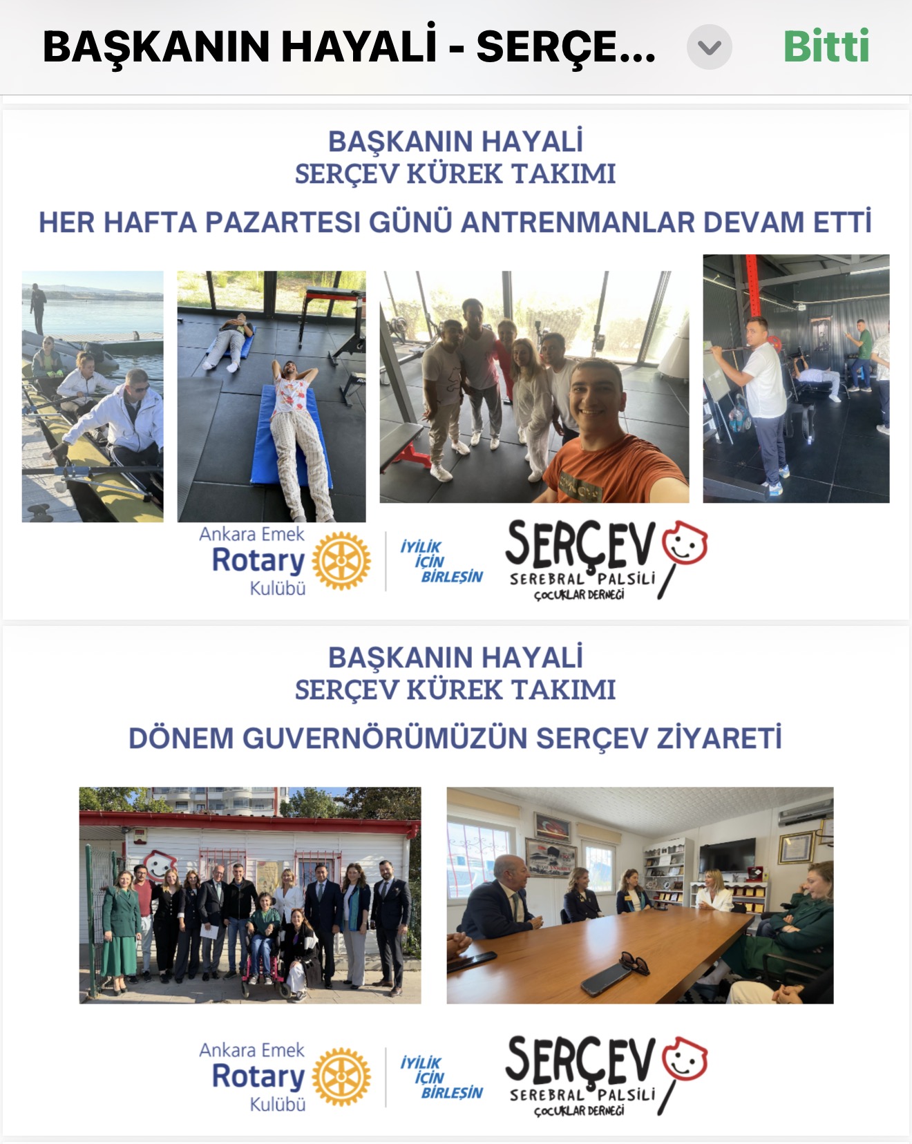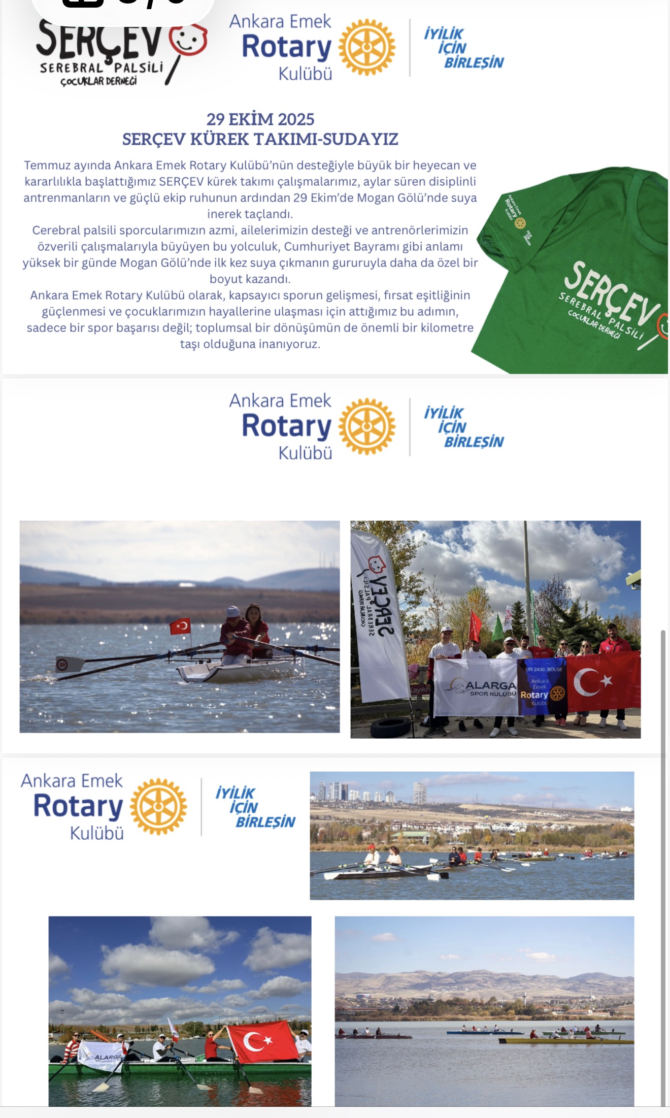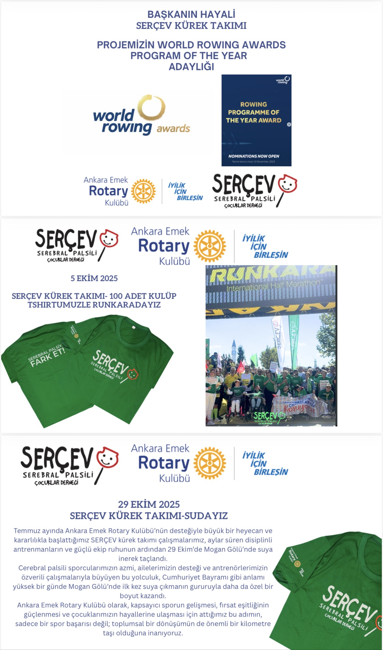 TEMMUZ 2025 TARİHİNDE SERÇEV İLE BİRLİKTE YÜRÜTÜLEN PROJEDE SPASTİK ÖZÜRLÜ 4 GENÇ KÜREK TAKIMI İLE TANIŞTIRILDI.HAFTADA İKİ GÜN KARADA EĞİTİM ALDIKTAN SONRA 29 EKİM 2025 TARİHİNDE MOGAN GÖLÜNDE TEKNE İLE GÖLE İNEREK KÜREK ÇEKMEYE BAŞLADILAR.SERÇEV -ANKARA EMEK KÜREK KULÜBÜ ÜYELERİ HAFTA DA BİR GÜN SUYA İNEREK KÜREK ÇEKMEYE DEVAM ETMEKTEDİR.