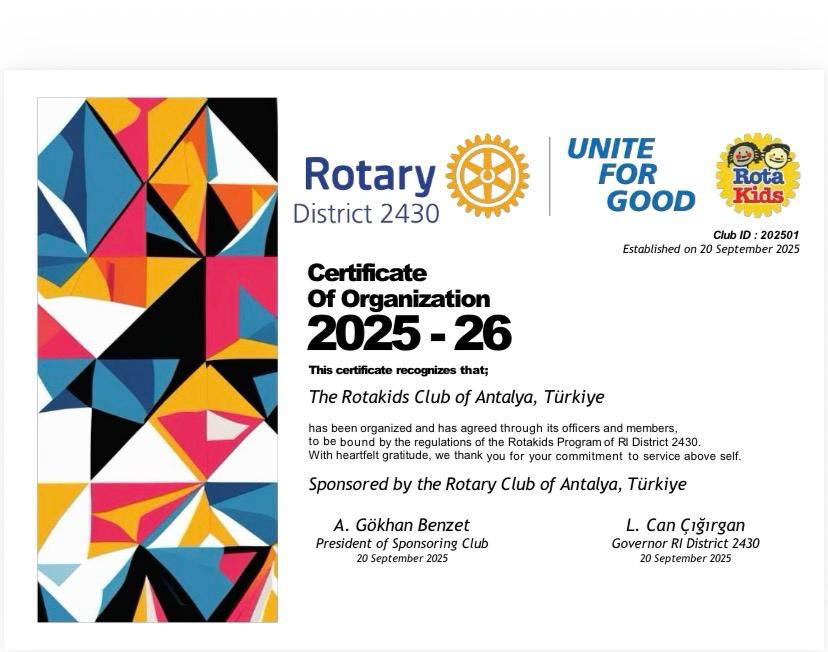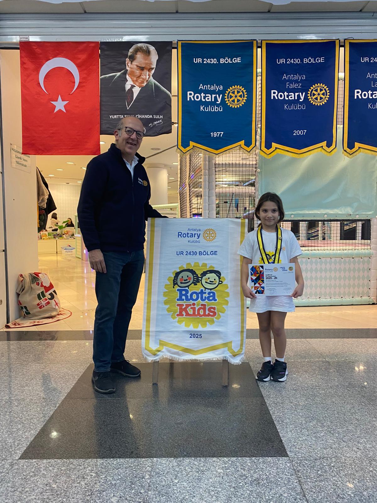 Antalya Rotary Kulübü 1977 yılında kurulan bir kulüp olmasına karşılık bu döneme kadar Rotakids kulübünü kurmamış olması nedeniyle en büyük hayalim içinde kendi çocuğumun da olduğu sosyal sorumluluk projelerinde yer alacak bir Rotakids kulübü kurmayı hayal etmiştim. Hayalim gerçek oldu.