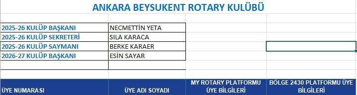 Kulüp üyelerinin en az %80 inin UR web sayfası ve My Rotary bölümünde kendilerine ait bilgileri güncellemiş olmasına dair rapor Bölge My Rotary Komtisi'ne iletilmiştir. KVKK gereğince ilgili dosya buraya eklenmemiştir.