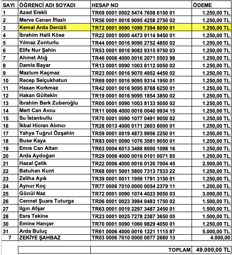 24 öğrenciye 12 ay boyunca her ay 1250 TL (9x1667 TL)