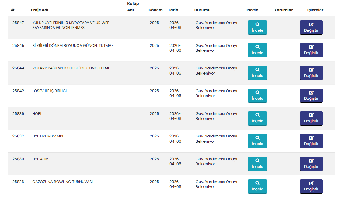 - Proje Adı: DÖNEM BOYUNCA GERÇEKLEŞEN PROJELERİNİ BÖLGE WEB SAYFASINA YÜKLEMEK