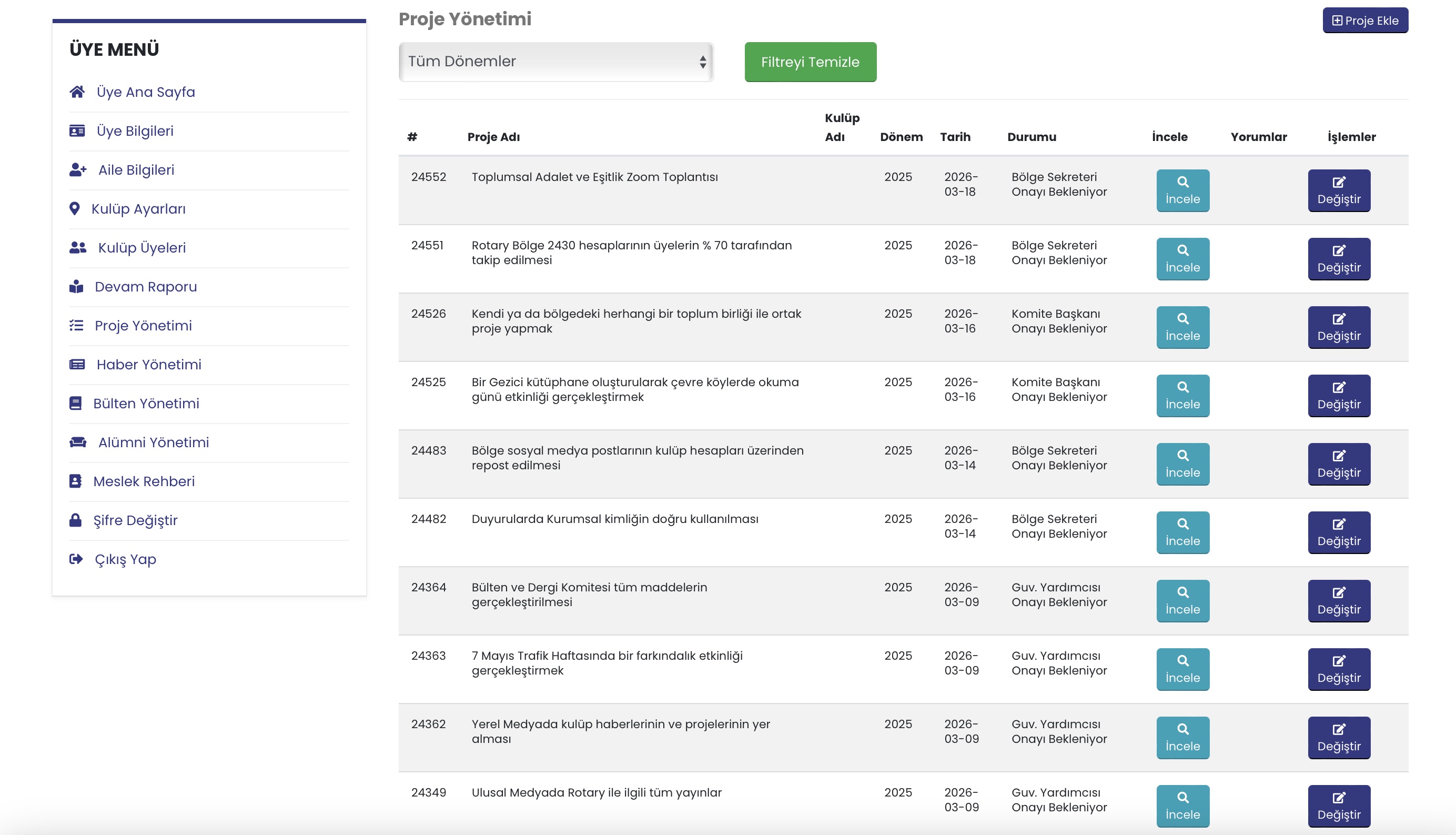• Proje Adı: Dönem Boyunca gerçekleşen projeleri bölge web sayfasına yüklemek