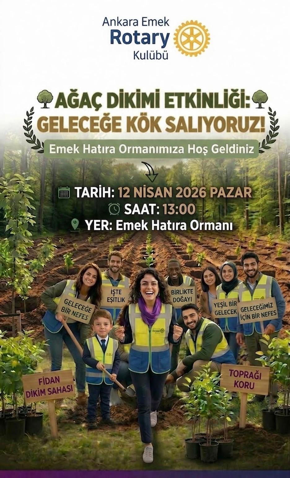 12 NİSAN PAZAR GÜNÜ ANKARA EMEK ROTARY ORMANIMIZA 100 ADET SEDİR AĞACI DİKECEĞİZ.TÜM ÜYELERİMİZ,EŞLERİMİZ,ÇOCUKLARIMIZ VE ROTAKİDSLERİMİZ VE ONLARIN AİLELERİ İLE ORMANIMIZIN AĞAÇLANDIRMA ÇALIŞMALARINI TAMAMLAYACAĞIZ.BU SIRADA PEYZAJ MİMARI OLAN ÜYEMİZDE DİKECEĞİMİZ FİDANLARIN ÖZELLİKLERİ VE ORMANLAR HAKKINDA BİLGİLENDİRME YAPACAKTIR.FOTOĞRAFLARI PROJE TAMAMLANINCA TARAFINIZA ULAŞTIRACAĞIM.