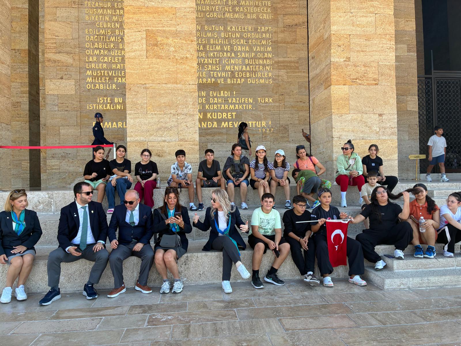 29.08.2025 tarihide Deprem Bölgesi Antakya Yeşilpınar Orta Okulu'nun yirmi öğrencisini Ankara'ya Anıtkabir'e götürerek Atamızla buluşturduk. Öğretmenleri Nuran Kara ve velileri öğrencilere bizlerle beraber refakat etti. İlk kez Ankara ve Anitkabir'e gelen öğrencilerimizin heyecan ve mutluluğuna tanıklık etmek bizleri de çok mutlu etti. Bu projemizde Kültür ve Sanat Bölge Ana Komite Başkanımız Lale Gökdağ bizlere eşlik etti.