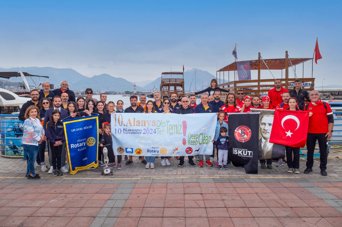 Alanya Rotary Kulübü olarak, çevreye duyarlı projelerimizden biri olan ve bu yıl 11’incisini gerçekleştireceğimiz “Dip Temiz, Tertemiz” etkinliğimizi, Alanya Belediyesi Çevre Sağlık Müdürlüğü iş birliğiyle ve sivil toplum kuruluşlarının katkılarıyla hayata geçirmeyi düşünüyoruz. Rotary’nin yedi öncelikli çalışma alanından biri olan çevre koruma teması kapsamında düzenlenen bu etkinlikte, hem denizlerimizi temizledik hem de çevre bilinci oluşturmayı amaçladık. Deniz çöplerinin %60-80’ini plastik atıkların oluşturduğu ve her yıl denizlere yaklaşık 6,5 milyon ton çöp eklendiği biliniyor. Bu kirlilik, deniz canlılarının yaşamını tehdit ederken, dolaylı olarak insan sağlığını da riske atıyor. Bu vesileyle tüm bireyleri çevreye karşı daha duyarlı olmaya davet ediyor, etkinliğimize katkı sunacak olan Alanya Belediyesi’ne, SKUT’a (Suda Arama Kurtarma Derneği), Mavi Bayrak otellerine, Dolphin Dive’a, Antalya Sea Leon Diving Centre’a ve Alanya Surf Team’e içten teşekkürlerimizi sunuyoruz.