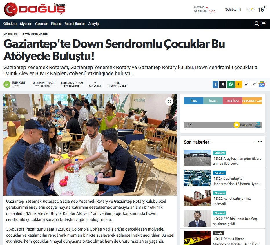 3 Ağustos Pazar günü ev sahibi olduğumuz Minik Alevler, Büyük Kalpler Atölyesi Projesi kapsamında yesemekrotary , gazianteprotarykulubu , yesemekrotaract ,yesemekinteract ve yesemekrotakids kulüpleri ile birlikte özel gereksinimli güzel kalplerle bir araya gelerek çok anlamlı bir sanat atölyesi gerçekleştirdik. Bu atölyede rengârenk mumlara süslemeler yaparak hem onların hayal dünyasına konuk olduk hem de unutulmaz bir deneyim yaşadık. Toplumsal farkındalık yaratmak ve özel gereksinimli bireylerin sosyal hayata aktif katılımını desteklemek amacıyla düzenlediğimiz Minik Alevler Büyük Kalpler Atölyesi projesinde sanatın birleştirici gücüyle, sevgiyi ve yaratıcılığı buluşturduğumuz çok anlamlı bir proje gerçekleştirdik. Down sendromlu çocuklarımızın ürettiği mum boyamaları ve süslemeleri sergi açıp satarak , küçük de olsa elde edilen tutarı onkoloji hastanesi çocuk bölümü birimine kitap ve kırtasiye desteği projesine destek olduk.