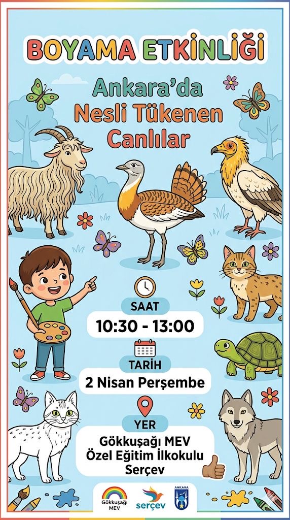 GÖKKUŞAĞI MEV ÖZEL EĞİTİM İLKOKULU SERÇEV'DE 10 ÖZEL GEREKSİNİMLİ ÇOCUĞUMUZA BOYAMA VE RESİM KURSU VERİLDİ.