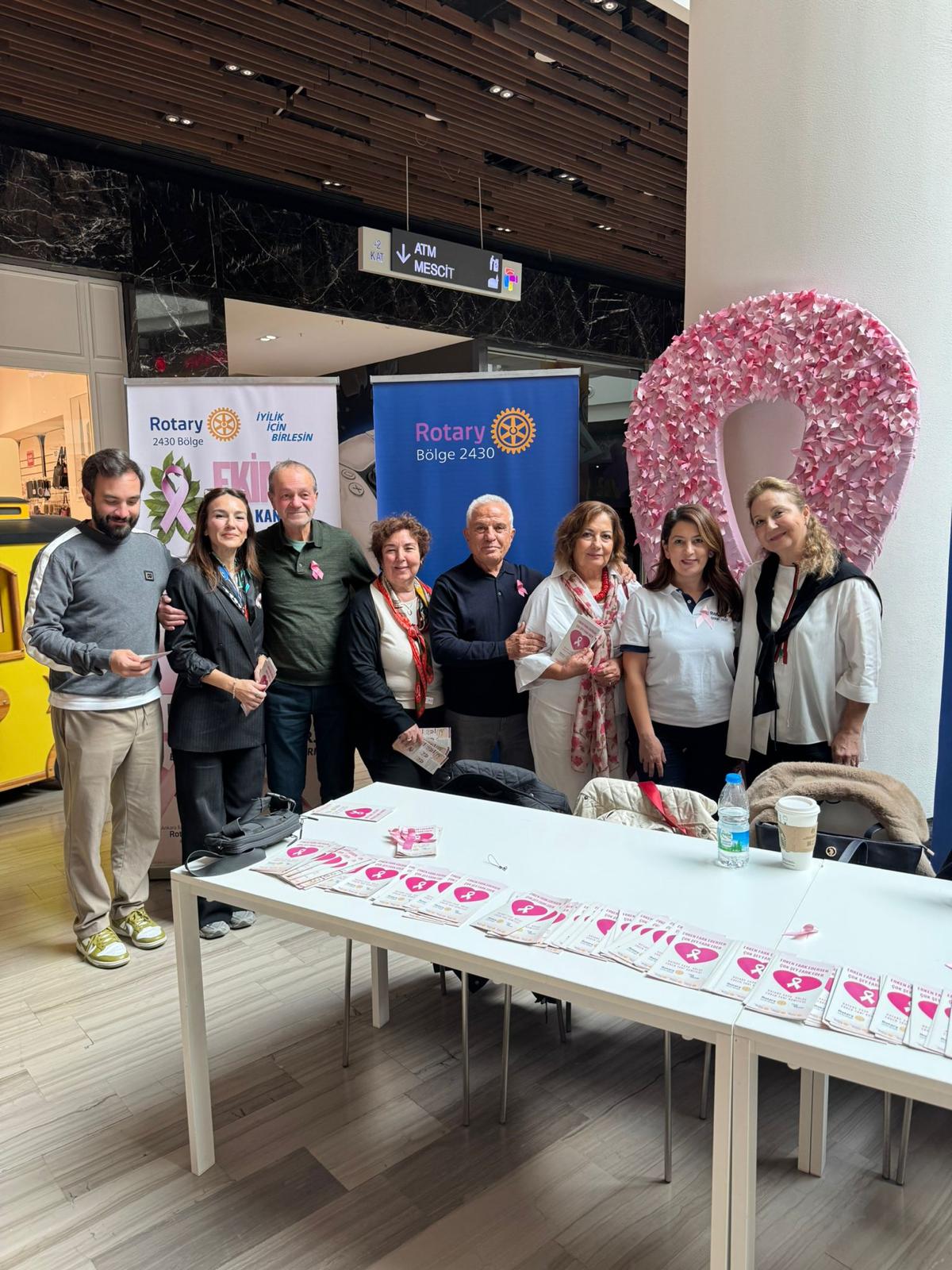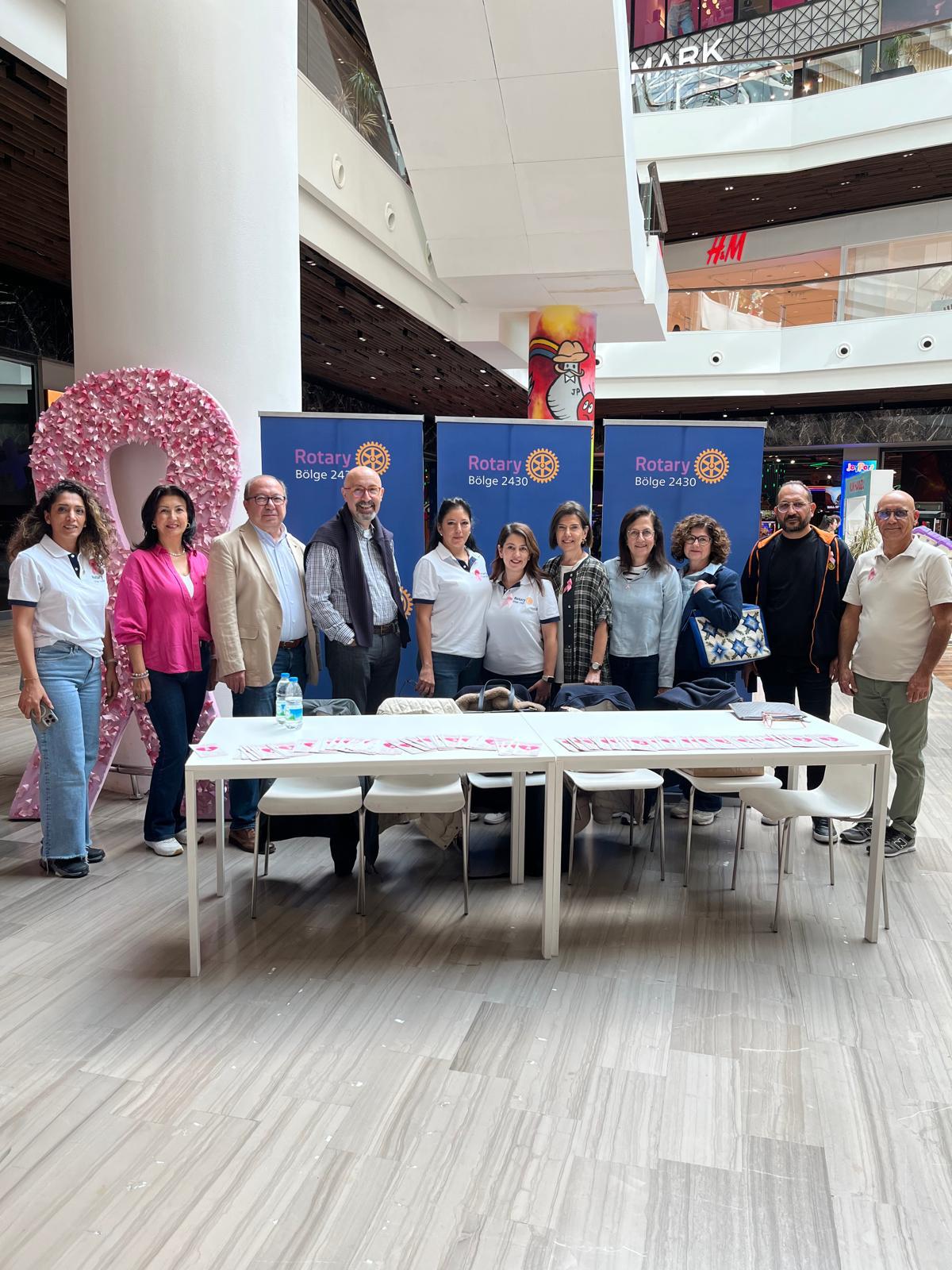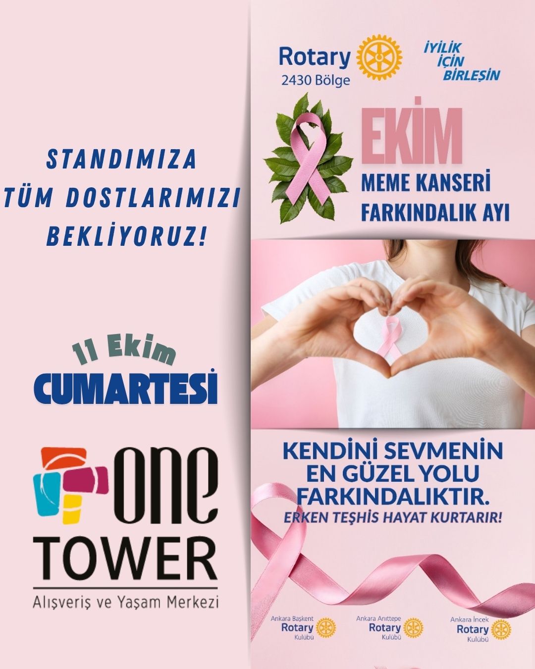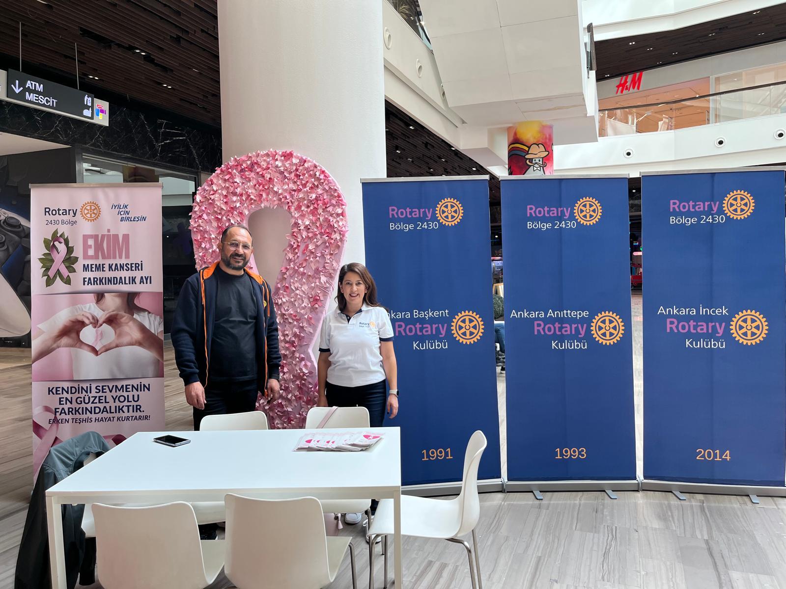 Ankara Başkent, Anıttepe ve İncek Rotary Kulüpleri olarak meme kanserinden erken tanının önemine dikkat çekmek amacıyla One Tower AVM'de yaklaşık 1000 kişiye broşür dağıtıp kendilerine pembe kurdele takarak farkındalık yaratmayı hedefledik. Aynı zamanda kulüplerimizdeki sağlık çalışanı üyelerimiz kişilere bilgilendirmelerde bulundular.