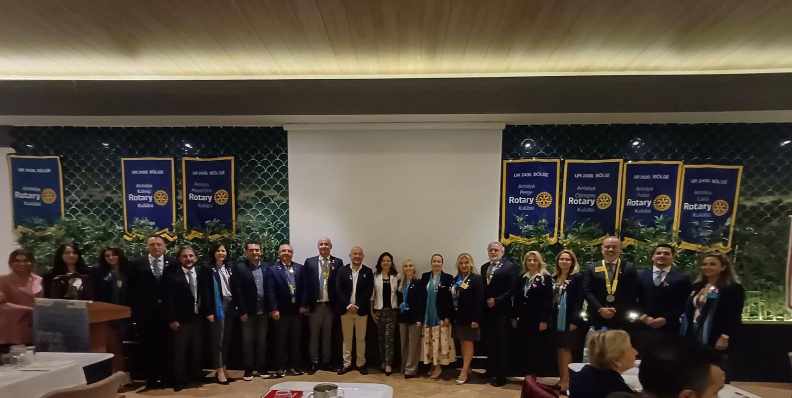 Antalya Rotary Kulüpleri (9 kulüp) ve Rotaract Klüplerimiz (5 Kulüp) ile birlikte ortak olarak 07.10.2025 tarihinde Antalya Lara Balık Evinde “Meme Kanseri” ve Erken Tanı konulu İntercity toplantısı düzenledik. Yaklaşık 140 rotaryen, rotaract ve roteşimizin katıldığı toplantıda Prof.Dr. Emel DURMAZ ve Prof.Dr. Alihan GÜRKAN tarafından paylaşılan değerli bilgiler ile meme kanseri ve korunması yönünde önemli bilgilere sahip olurken, yapılan etkinlik ile “iyilik için birleşerek” farkındalık yaratmaya çalıştık.