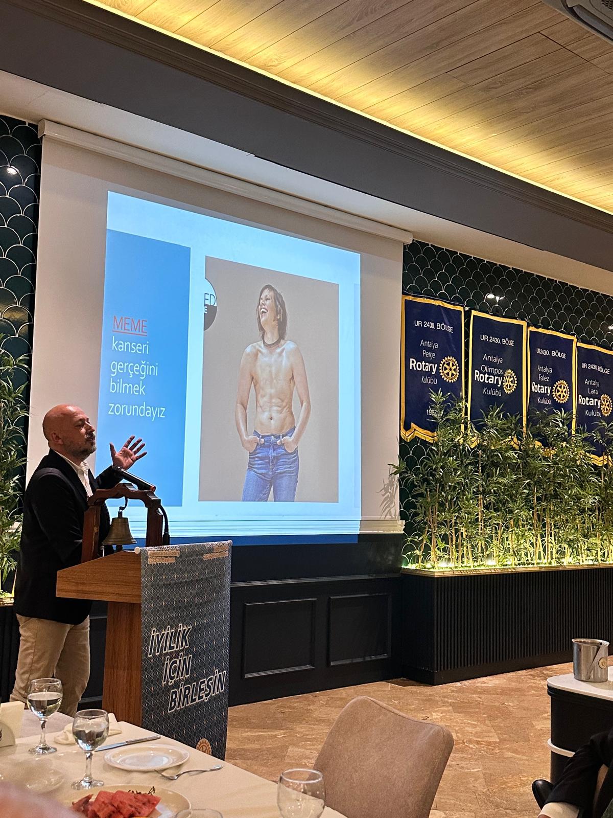 Proje kapsamında tüm Antalya Rotary ve Rotaract kulüpleri olarak bir araya geldik, İntercity şeklinde yaptığımız proje de Meme Kanseri'nde erken tanının önemini Prof Dr Emel Durmaz ve Prof Dr Alihan Gürkan'ın değerli sunumları ile gerçekleştirdik.