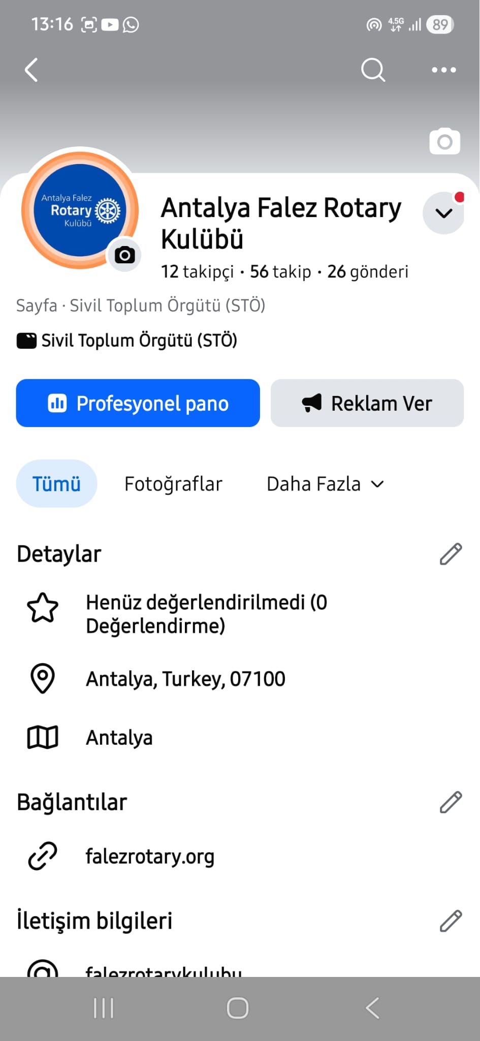 - Proje Adı: Falez Rotary Kulübü sosyal Medya Hesapları
