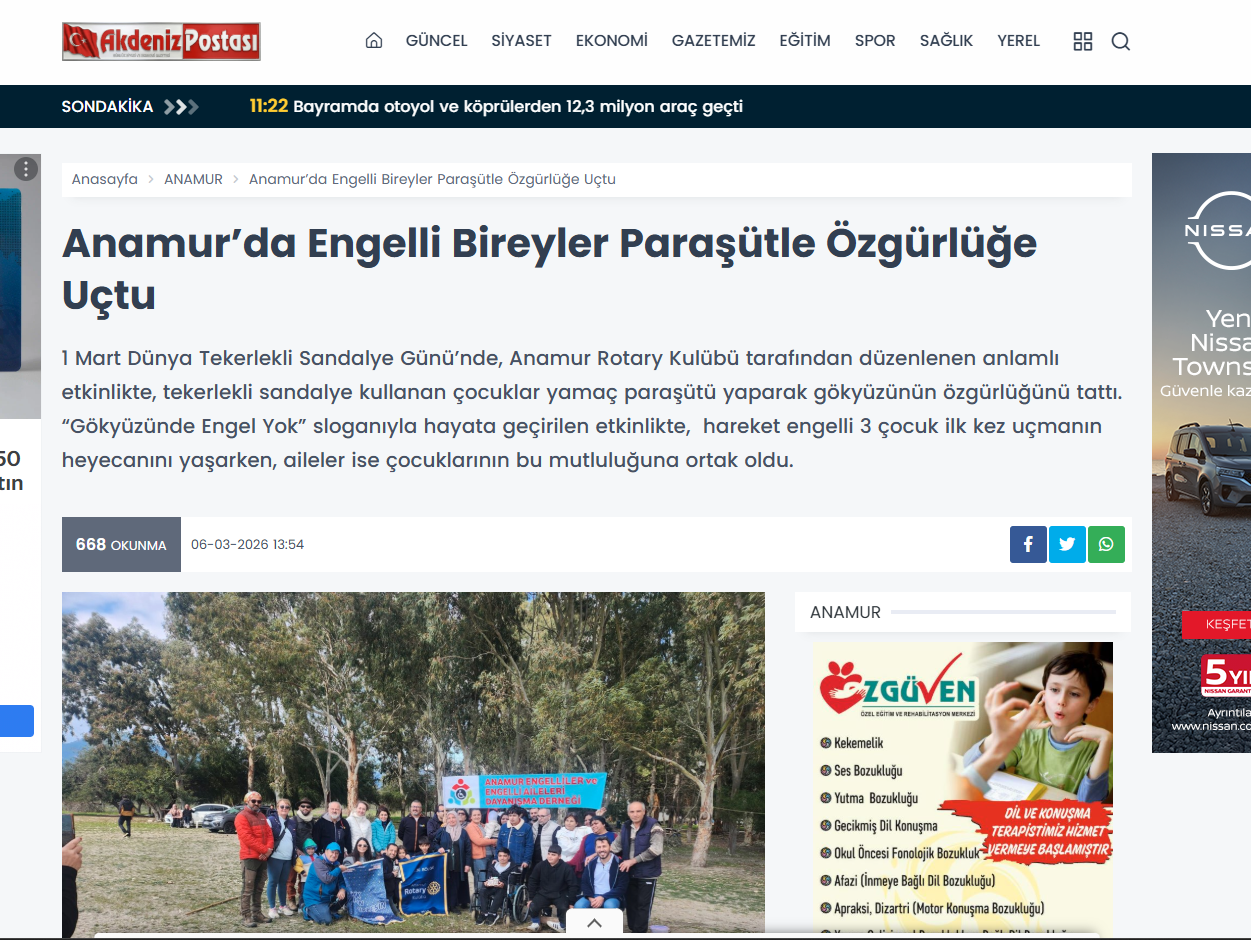 Engelli bireylere yönelek gerçekleştirdiğimiz 'Gökyüzünde Engel Yok' projemiz ulusal ve yerel basında yankı uyandırdı ve yer buldu.