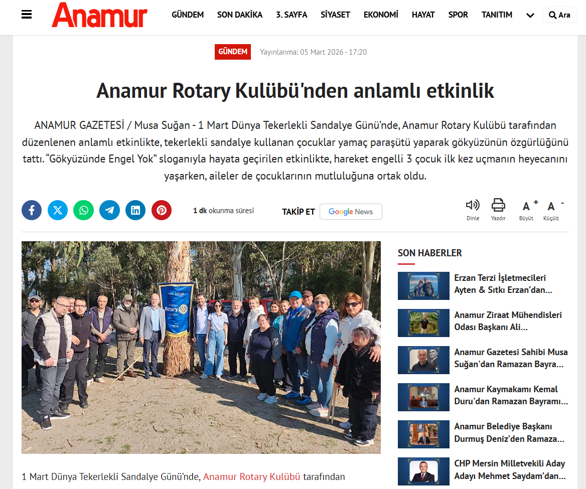 - Proje Adı: GÖKYÜZÜNDE ENGEL YOK - Basında Yansımaları
