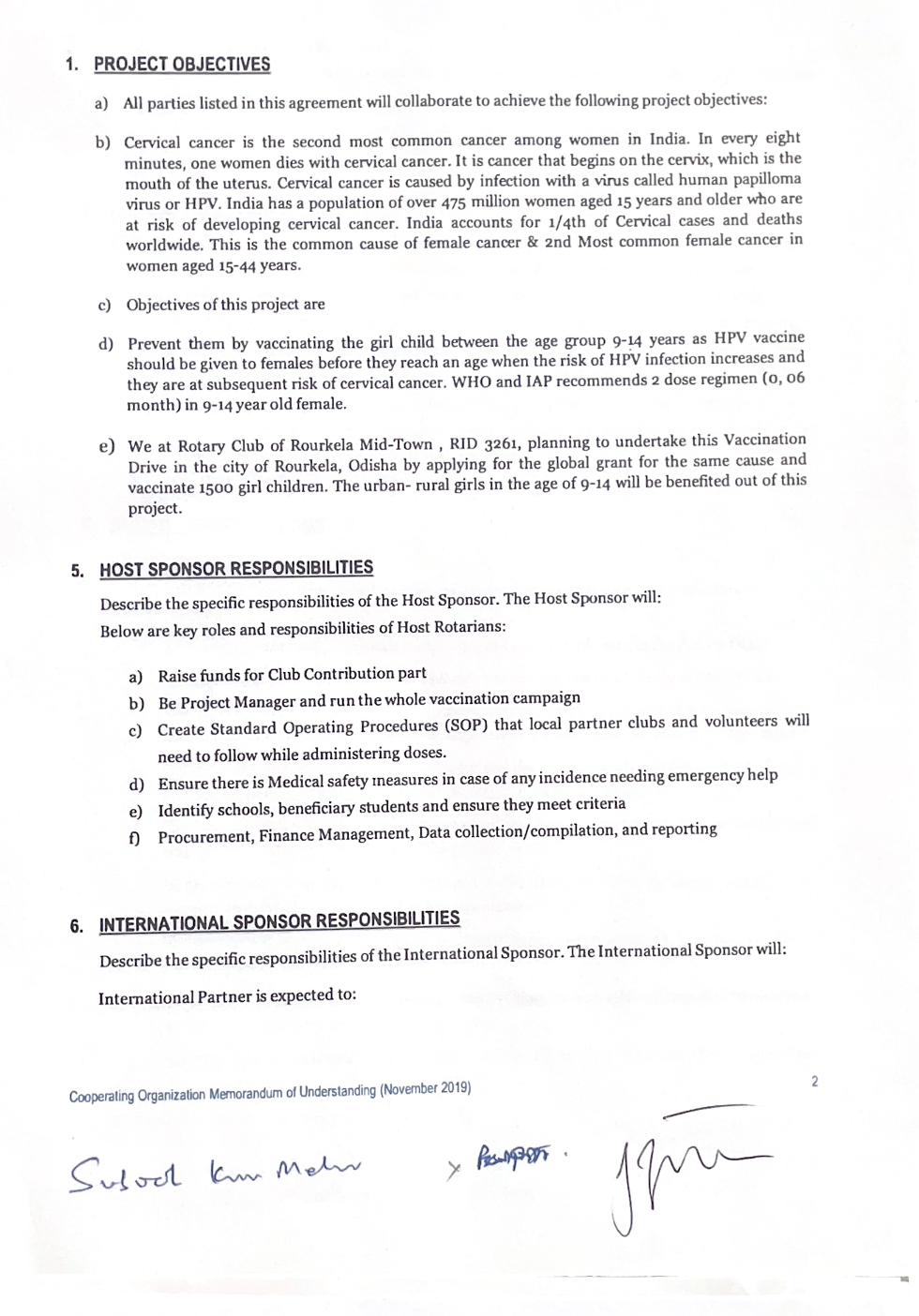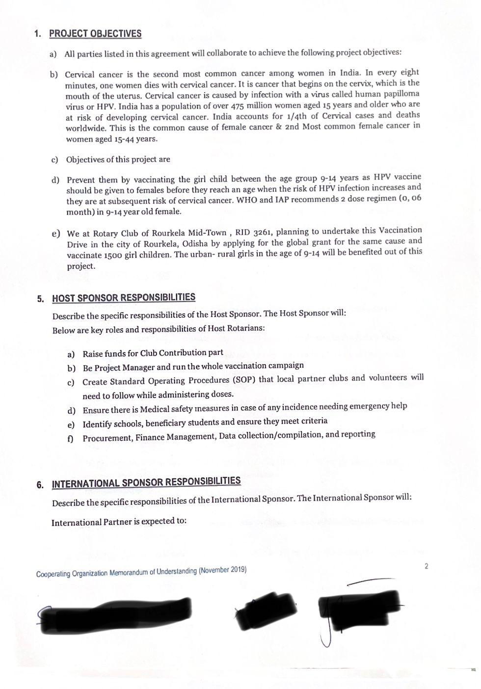 GG2462617 KAPSAMINDA ,RD 2361 ROTARY CLUB ROURKELA MID-TOWN ILE ORTAKLASA ULUSLARARASI SPONSOR OLARAK IMZALAMIS OLDUĞUMUZ BU GLOBAL GRANT PROJESI ILE HEM 1500 9-14 YAS ARASI KIZ COCUGUNUN AŞILANMASI , HEMDE HINDISTAN'DA TOPLUMSAL FARKINDALIĞI ARTIRMAYI HEDEFLIYORUZ.