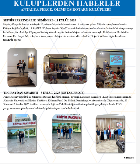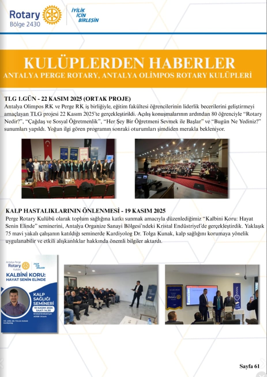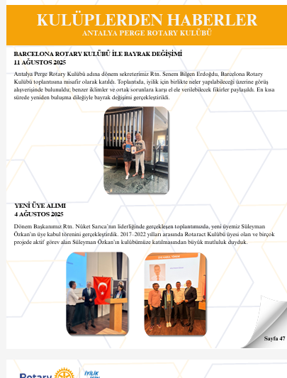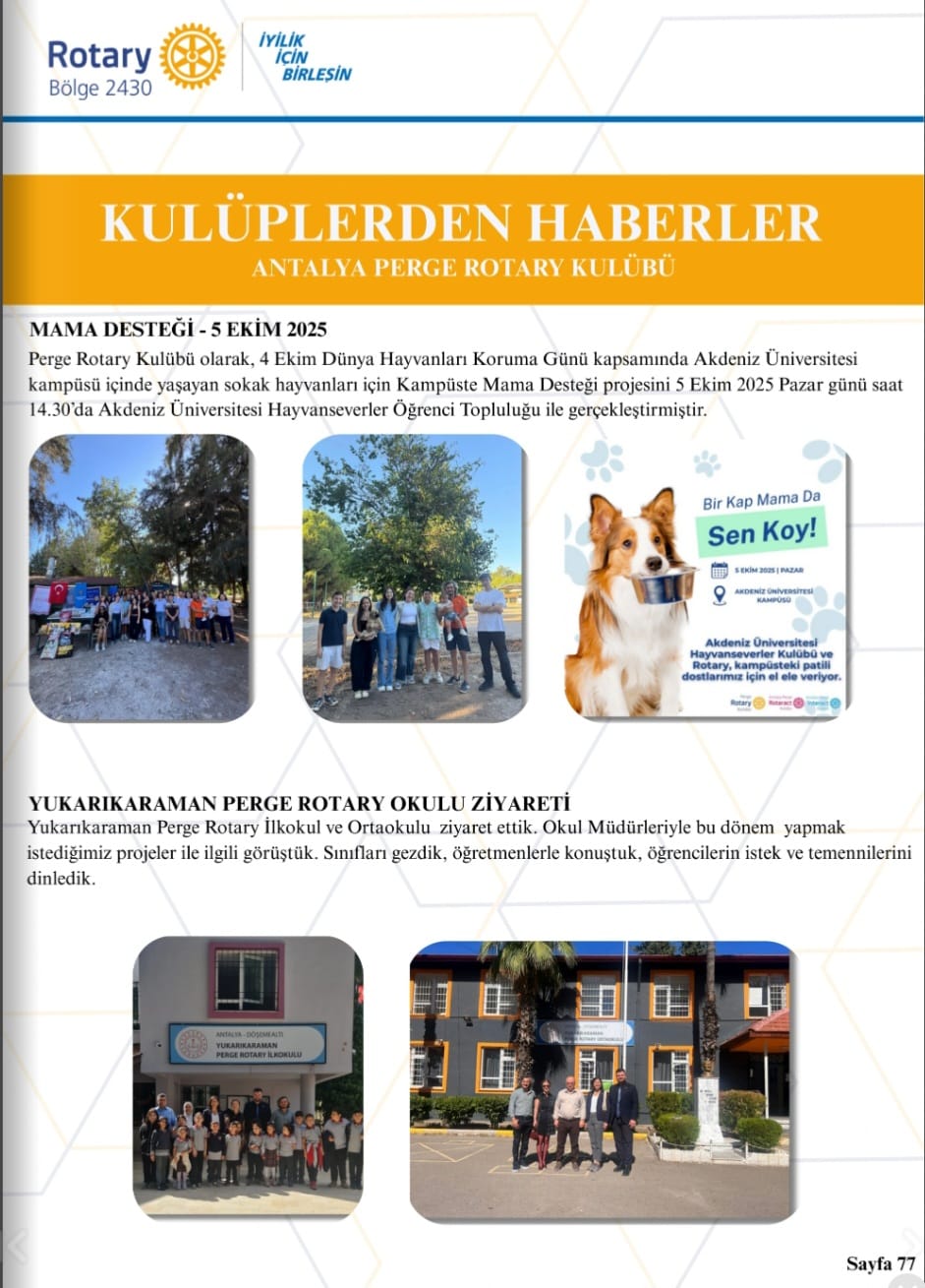 Perge Rotary Kulübü olarak her ay guvernör mektubu içim en az 2 kulüp projesi gönderilmiştir.