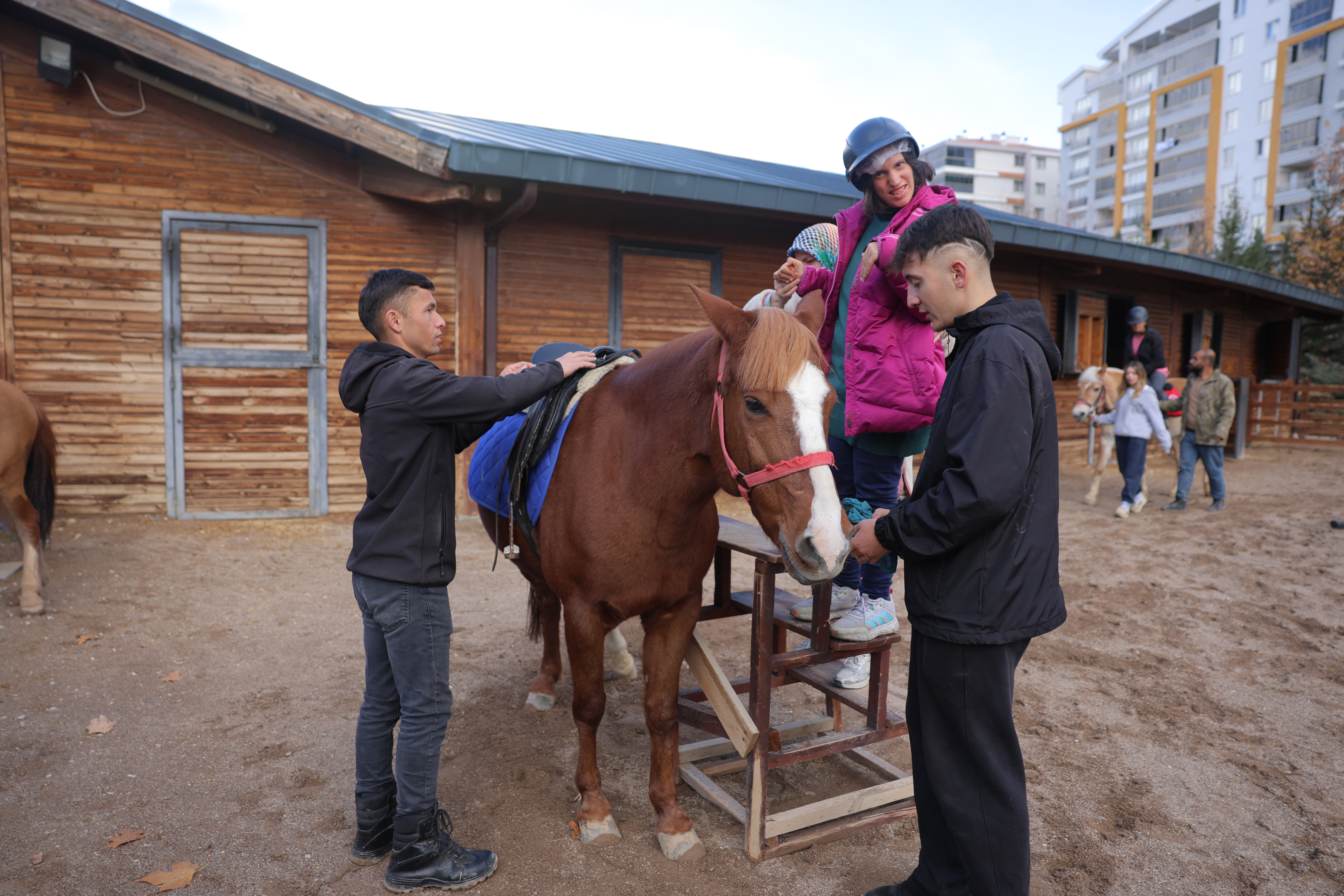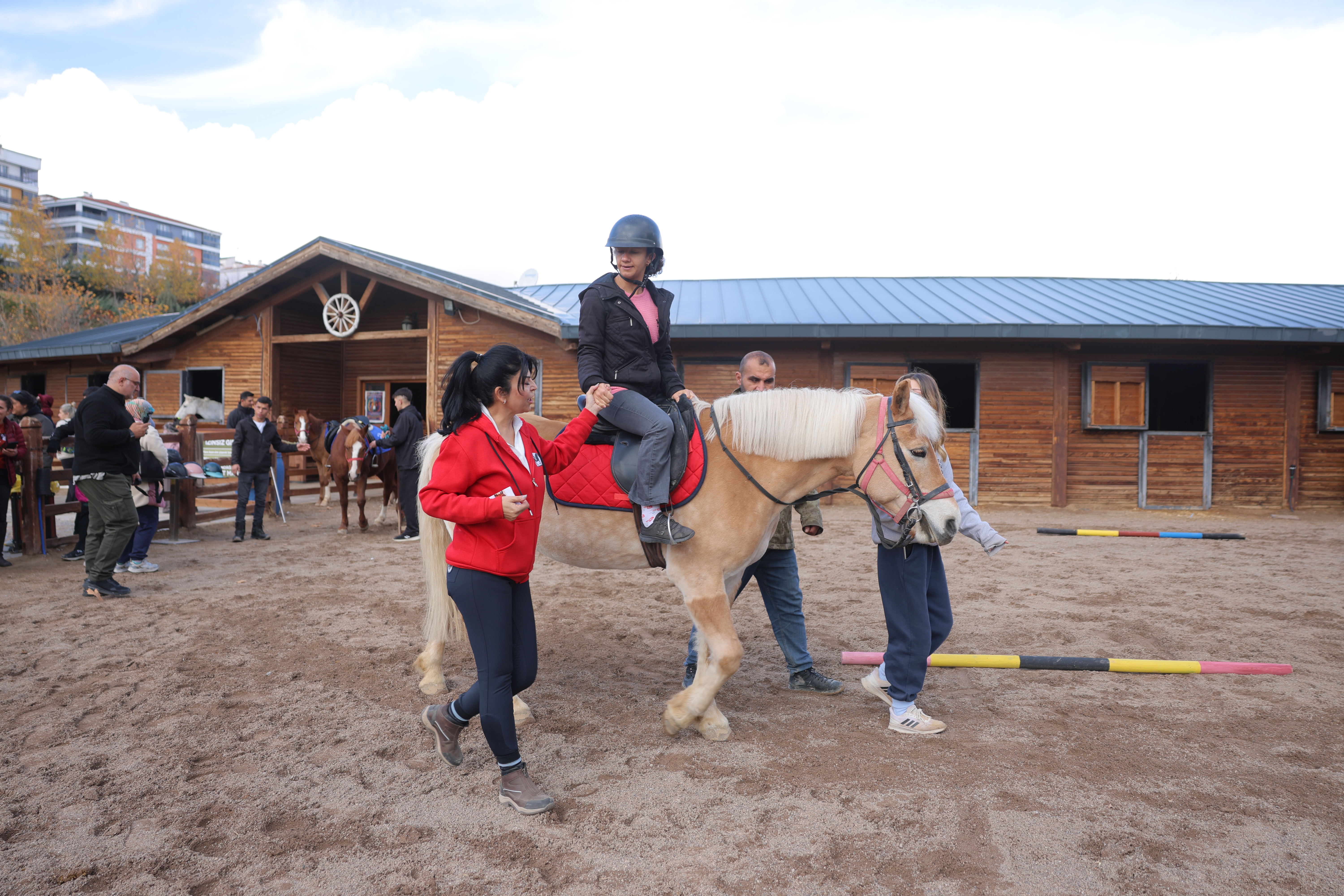 30 Kasım Pazar günü, “Engel yoktur, farklı dünyalar vardır.” diyerek yola çıktığımız Hayaller Engel Tanımaz projemizi GörenEller Okulu, Altı Nokta Körler Derneği, Ankara İşitme Engelliler Derneği EşPedal Derneği, Hadi Derneği'nden katılımcılarla gerçekleştirdik. 200’e yakın işitme, görme ve fiziksel engelli çocuk, yetişkin ve aileleri ile kahvaltıyla başladığımız günümüzü, HippoTerapi Uzmanı Didem Şaşmaz eşliğinde atların yoldaşlığında birbirimizin dünyalarını keşfederek geçirdik. Engelli bireylerin hayatlarında ilk defa at bindiler, atlara dokundular, saçlarını ördüler. Öğrenciler, aileleri, öğretmenleri ve okul aile birliği mensuplarının katılımı ile hayaller engel tanımaz dedik. En güzel sessizliği işitme engelli çocuklarımız, dostlarımızla yaşadık. Görme engelli dostlarımızın gözlerinin içinin güldüğüne şahit olduk. Fiziksel engelli dostlarımızın enerjisine ise hayran kaldık.