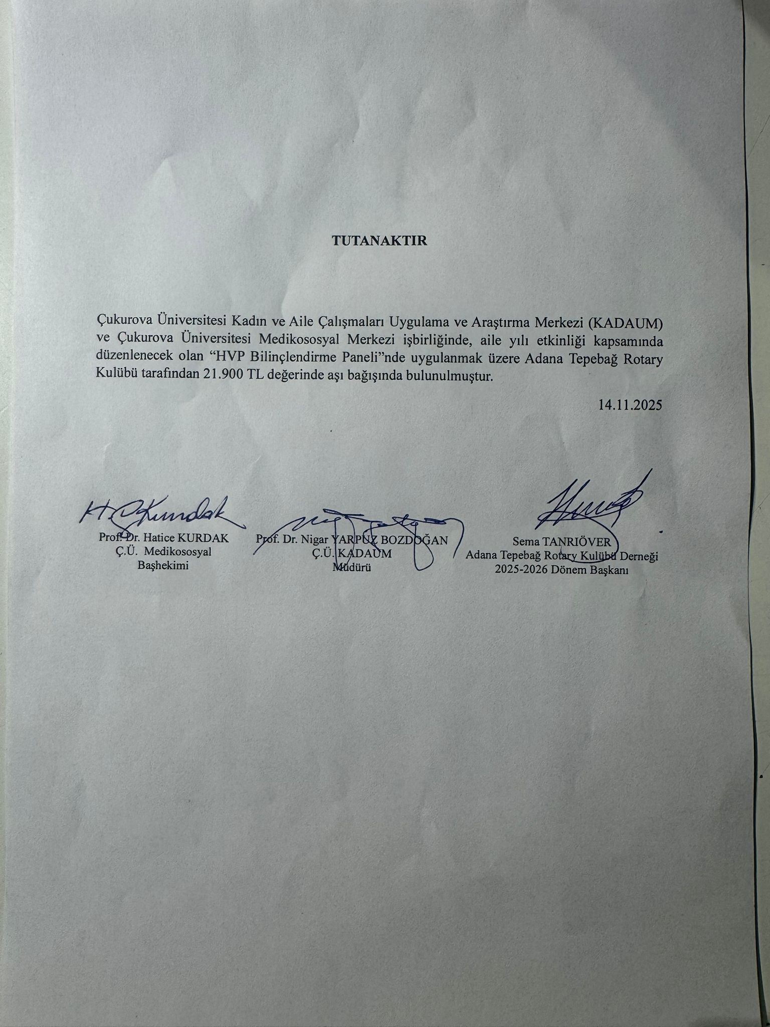 Çukurova Üniversitesi Mediko Sosyal Müdürlüğüne 2 öğrenci için toplam 6 doz aşı bağışı gerçekleştirdik.