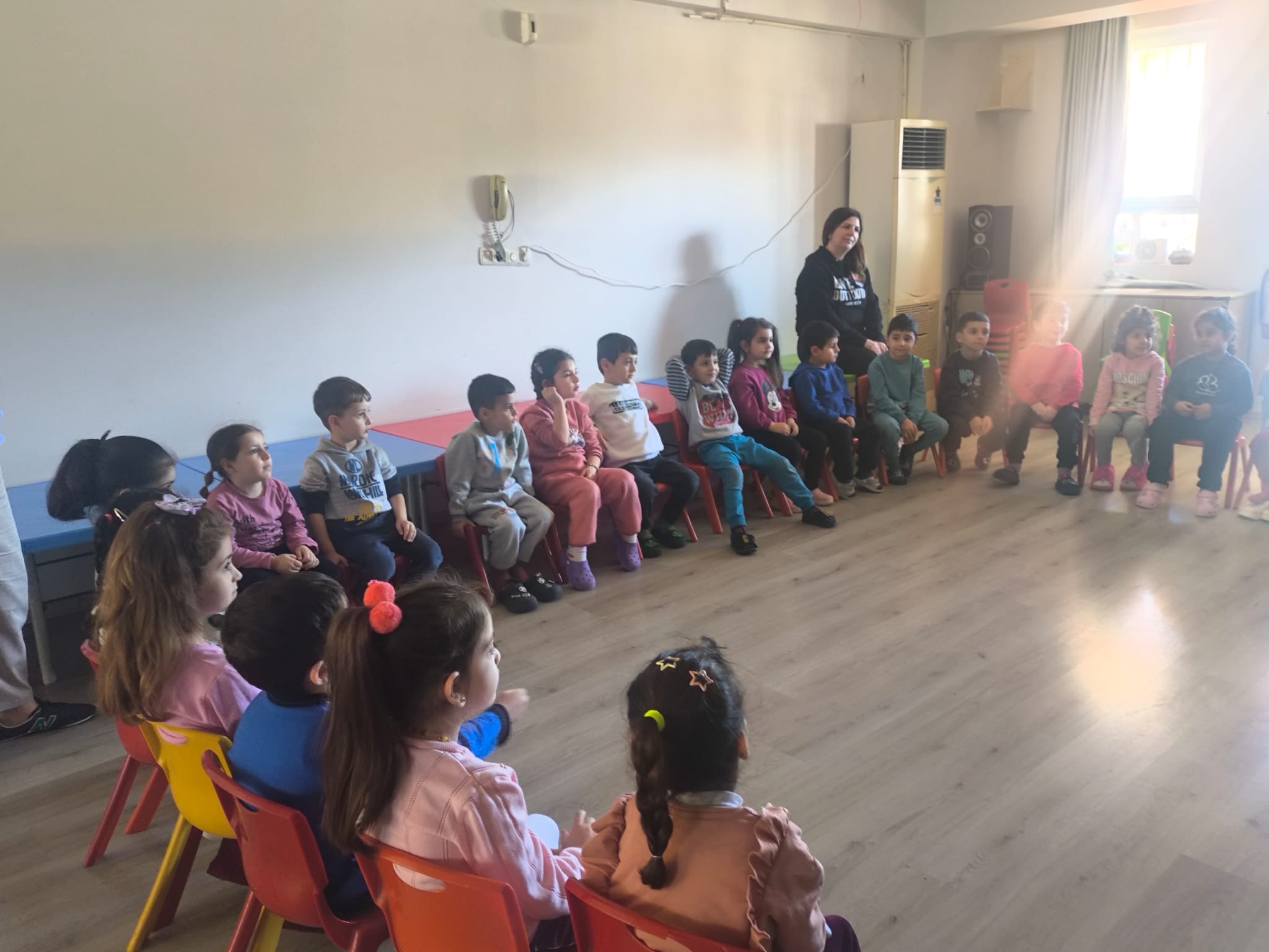 Mersin Akdeniz İlçesi Karacailyas Mahallesinde bulunan Hacivat Karagöz Anaokulunda Trafik Fatkındalığı ile ilgili 4-5-6 yaş grubu çocuklara eğitim verildi. Trafik Polisi O. E tarafından konu ile ilgili bilgiler verildi.