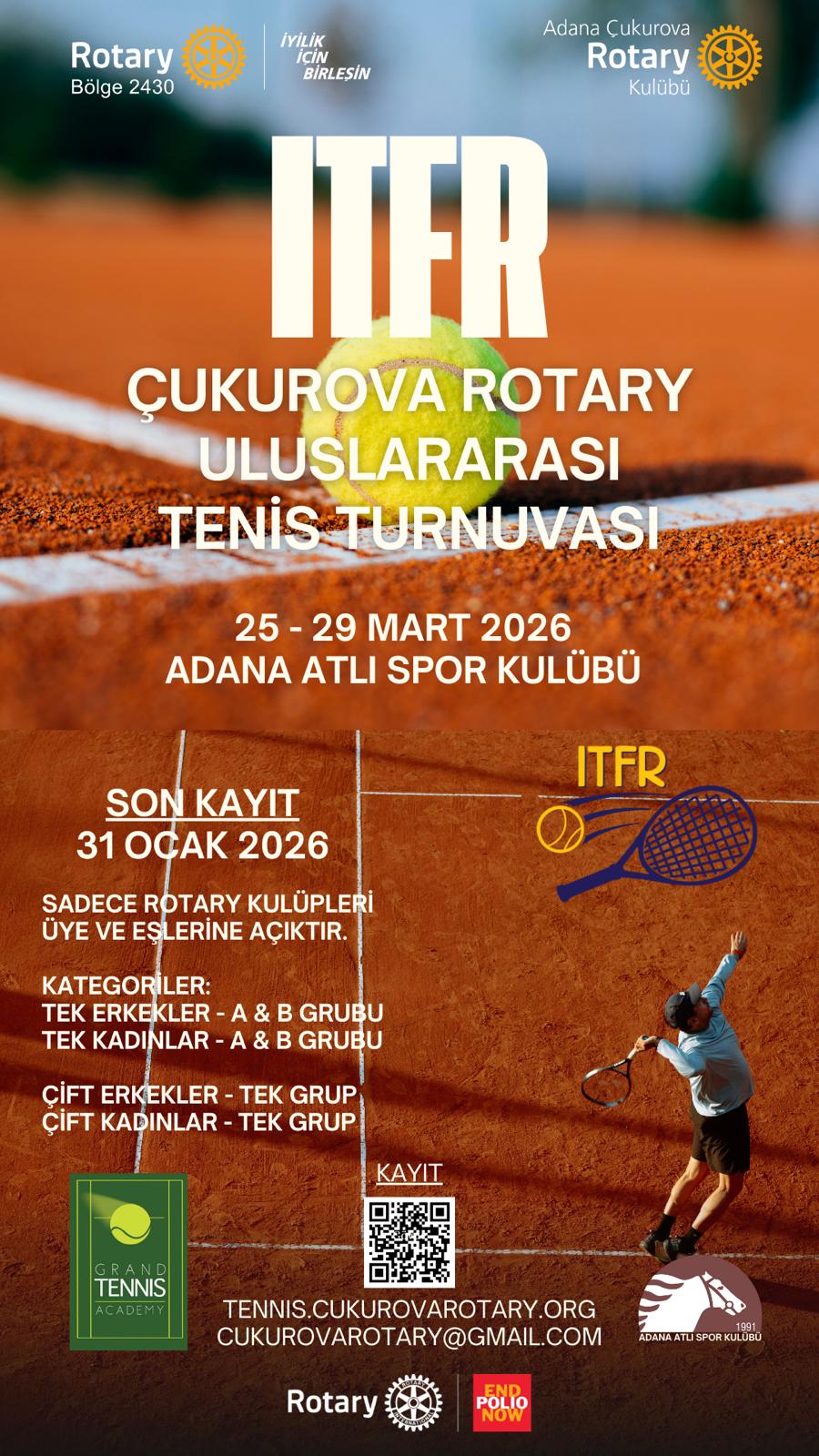 ADANA ROTARY KULÜBÜMÜZÜN EVSAHİPLİĞİNDE HOBİ AMACIYLA DÜZENLENEN TENİS TURNUVASINA KULÜBÜMÜZDEN 4 KİŞİ KAYIT OLDUK, KATILIM GÖSTERİLECEKTİR.