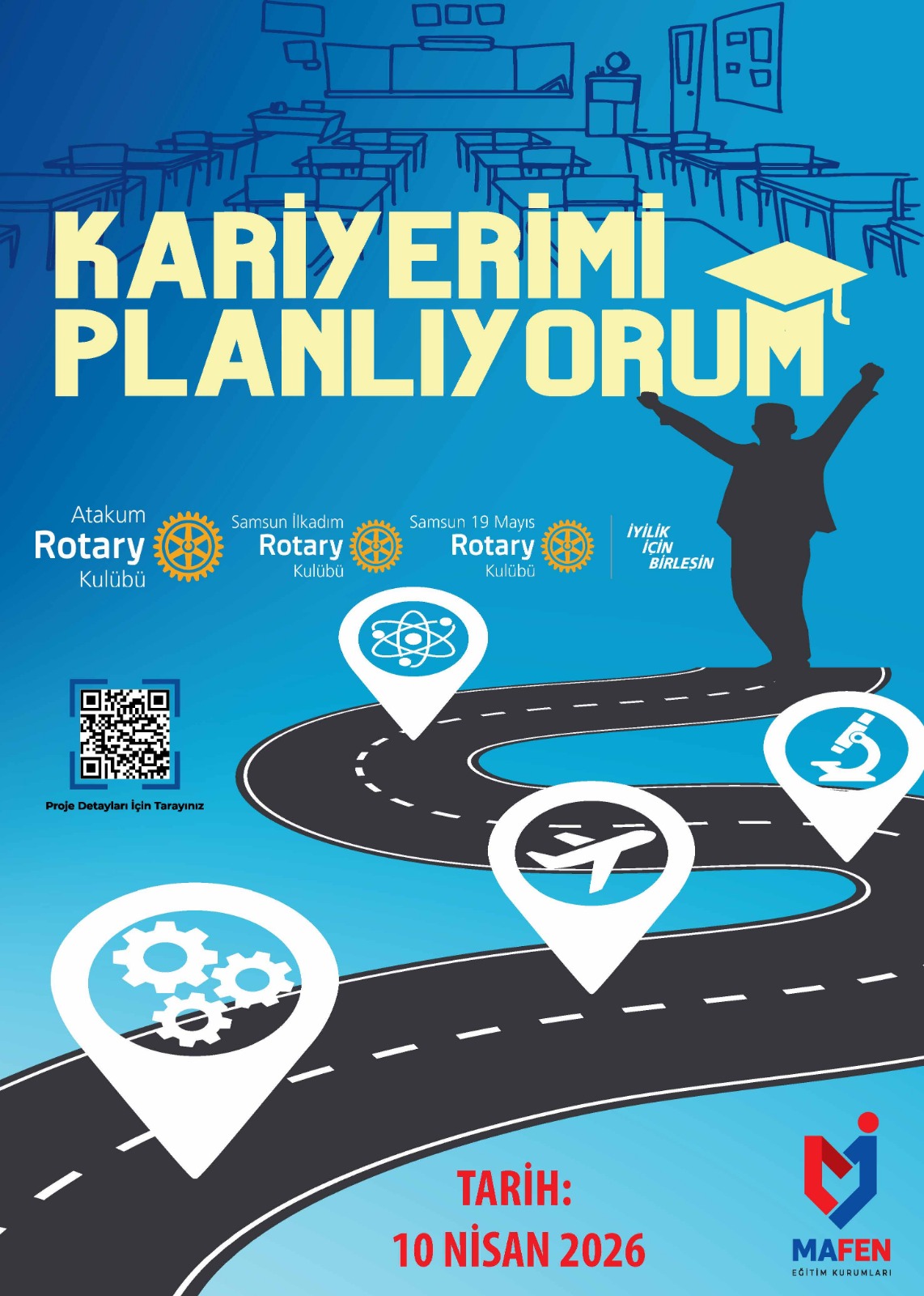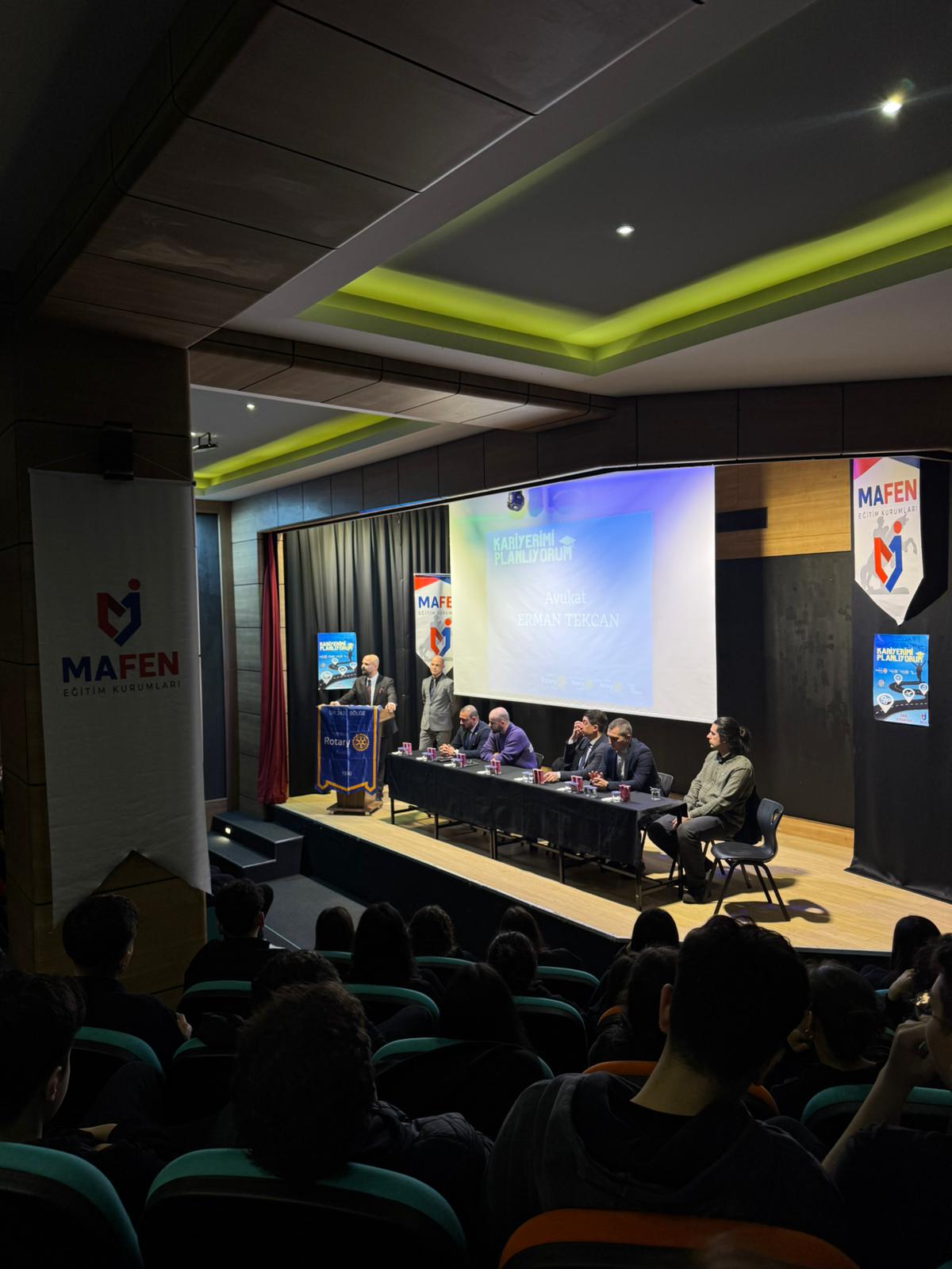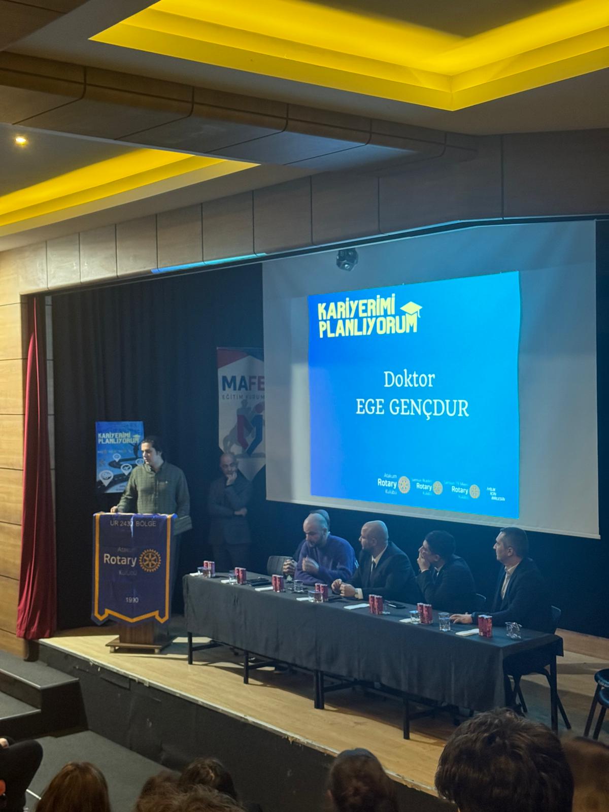 Samsun Mafen Okullarında 03.04.2026 tarihinde toplam 150 öğenciye, kariyerimi planlıyorum projesi kapsamında mesleki tanıtım yapıldı. Makine Mühendisliği - Taylan ERKUT - Atakum RK DB Avukatlık - Erman Tekcan - Atakum RK Üye Veterinerlik - Ünver Oğuzhan Tekay - Atakum RK Yeni Üye Yazılım Mühendislik ve AI - Levent Tanrıverdi _ Teknopark Genel Müdürü Doktorluk- Ege gençdur - Acil tıp hekimi Diş Hekimliği - Canberk Tekin