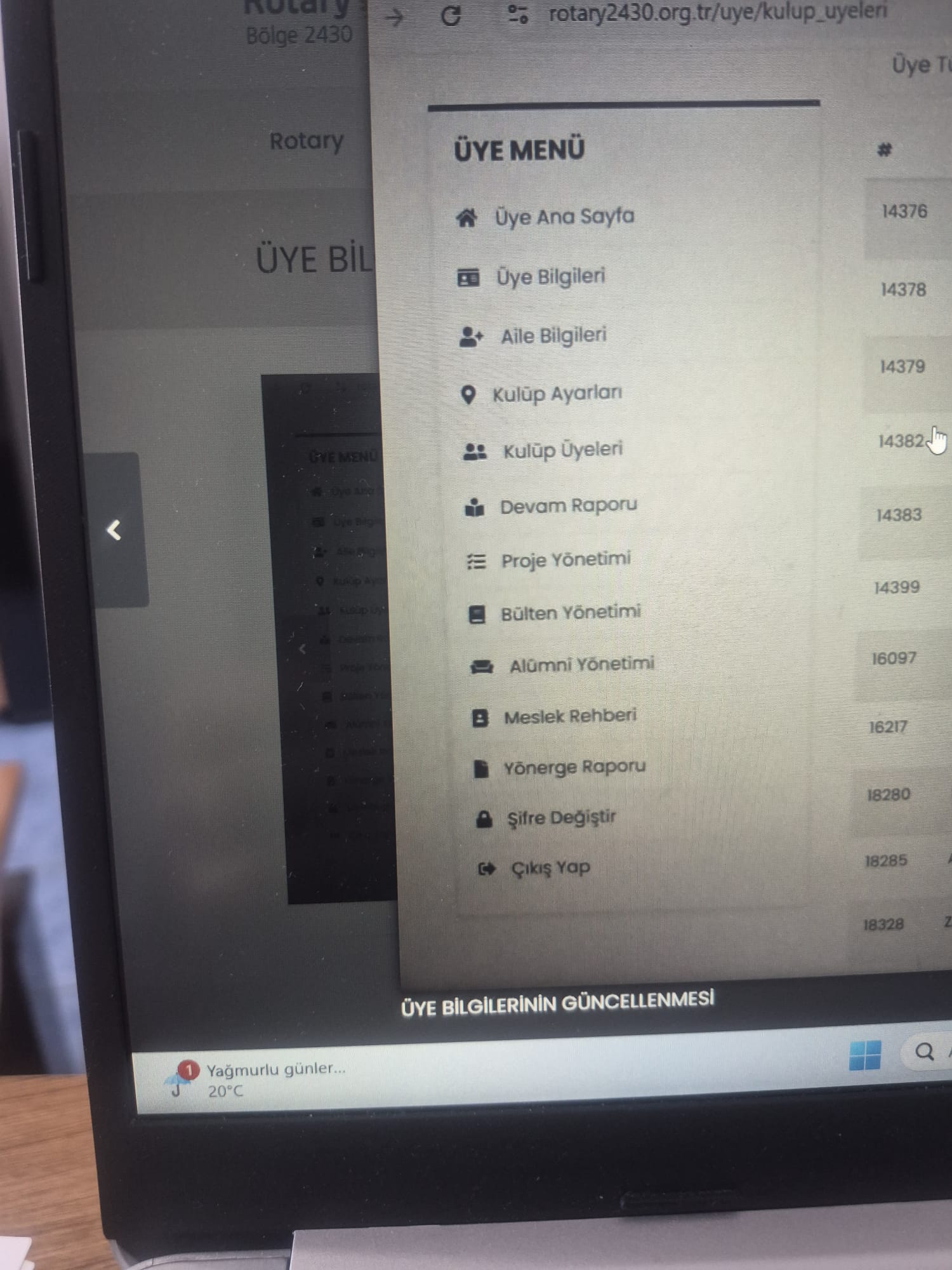 • Proje Adı: KULÜP ÜYELERİ KENDİ BİLGİLERİNİN GÜNCELLEMESİ