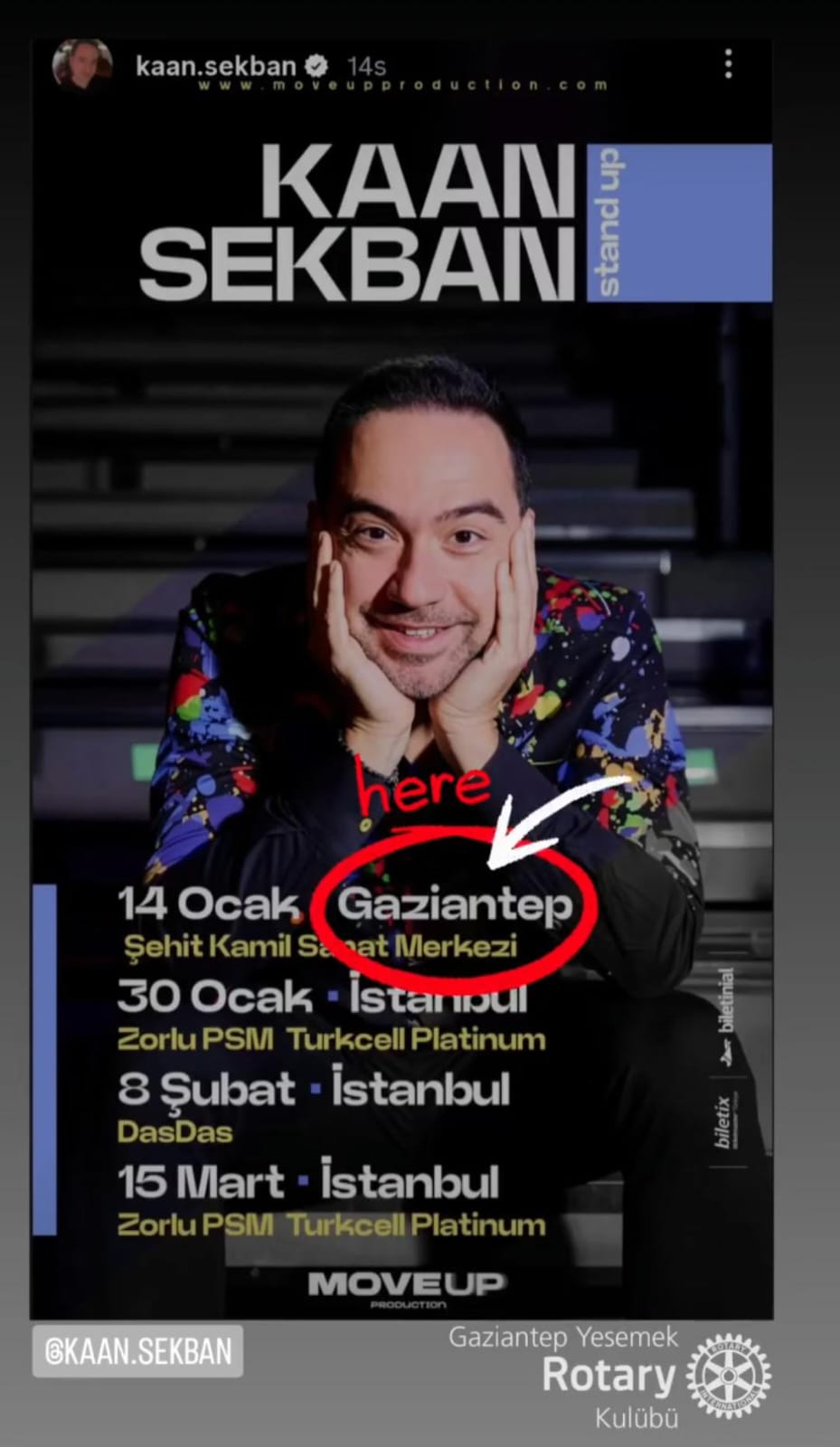 Ünlü komedyen Kaan Sekban’ın stand-up gösterisininin 14 Ocak'ta yaklaşık 400 kişinin katılımıyla gerçekleştirdik. Burs fonu ve eğitim faaliyetleri yararına ve rotary kurumsal kimliğini ön plana çıkarmak istediğimiz bu etkinliği gerçekleştirdik.