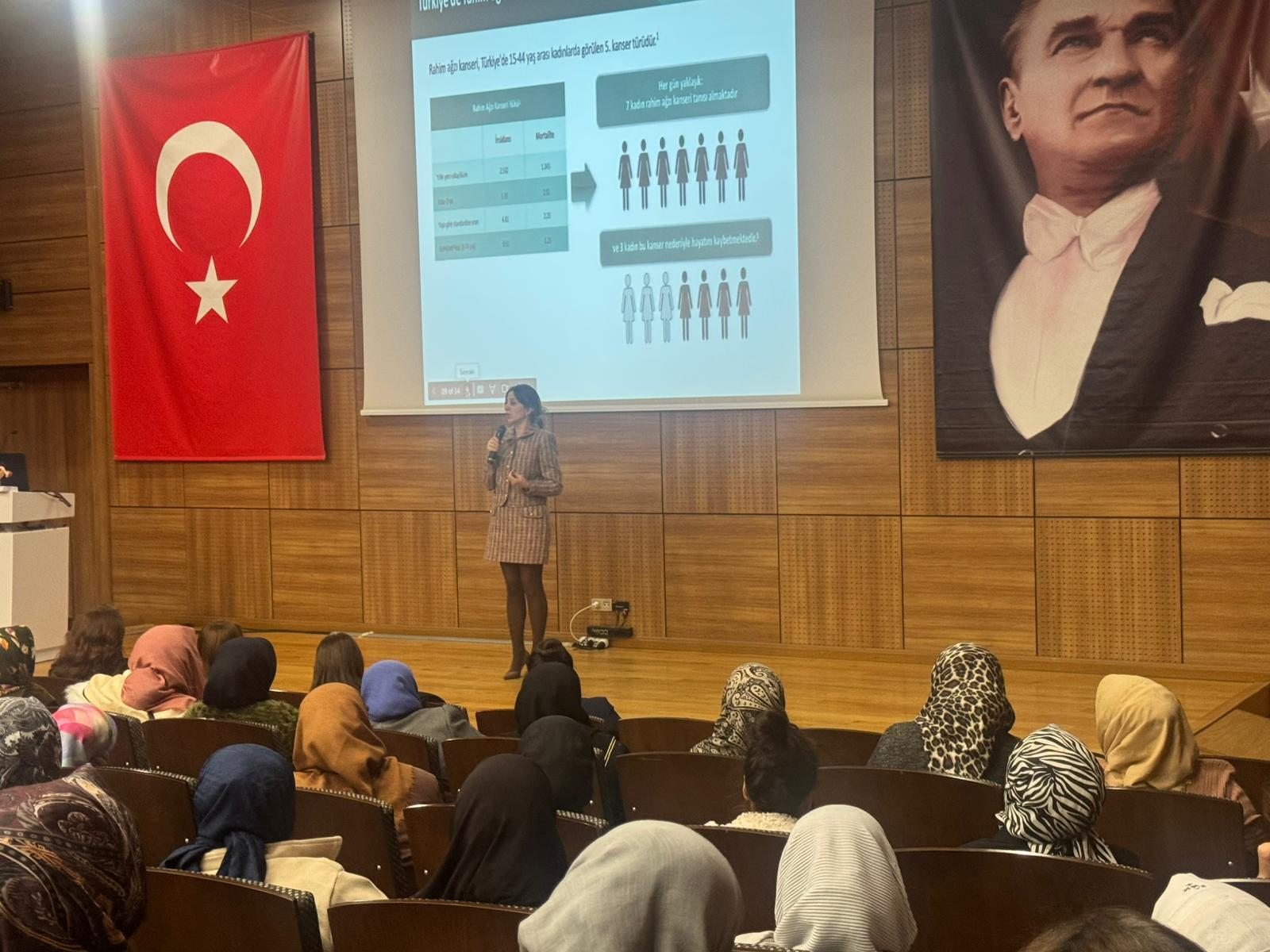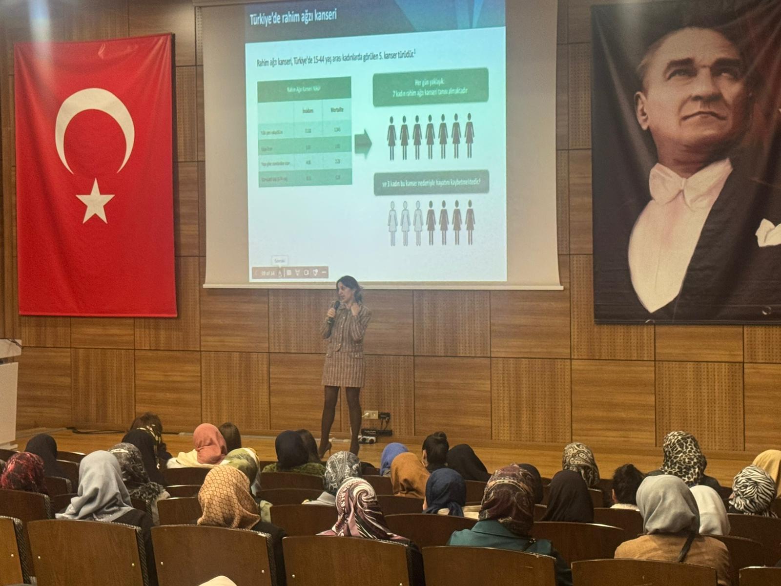 01.12.2025 tarihinde yapılan ev-ka projesi kapsamında Kadın Doğum uzmanı Dr. Özge Karuserci tarafından 150 kadına kadın hastalıkları ve erken tanının önemi konusunda eğitim verilmiştir.