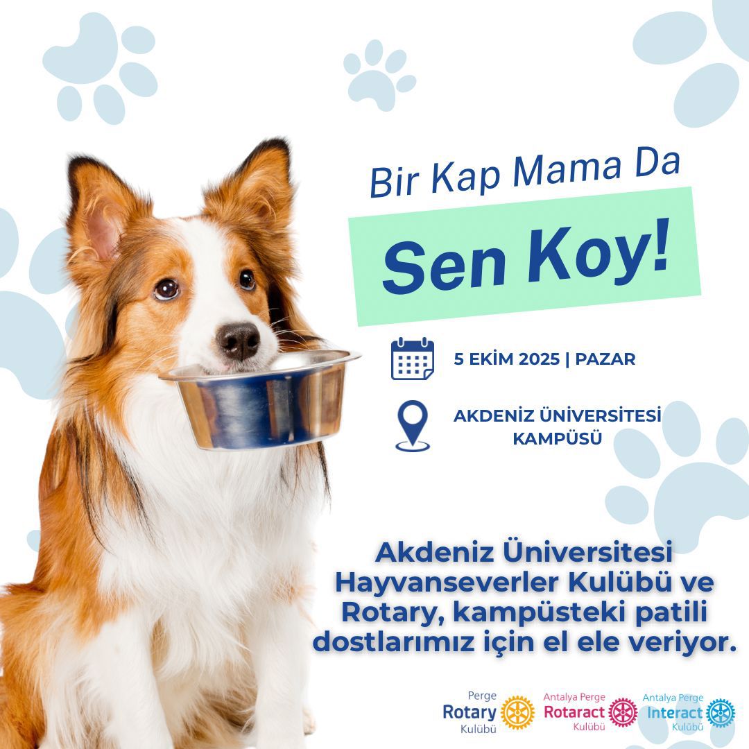 Rotaract ve İnteract kulüplerimiz ile iyilik için birleşerek, HaySev (Akdeniz Üniversitesi Hayvanseverler Öğrenci topluluğu ) eşliğinde Akdeniz Üniversitesi kampüsüsünde yaşayan can dostlarımız için mama dağıtımı yaptık ve kalan mamaları da daha sonra kullanmak üzere öğrenci kulübüne bıraktık.