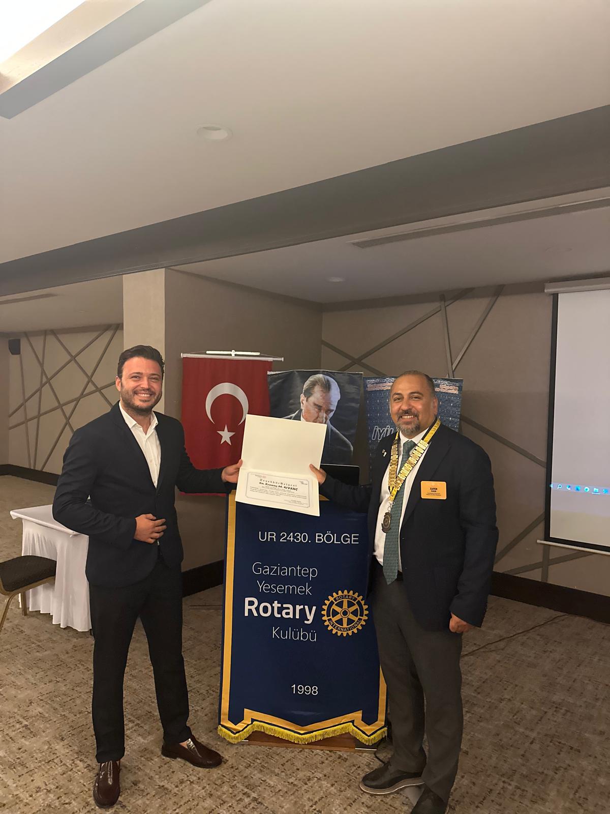 1 Ekim'de Geçmiş dönem guvernörümüz Malik Aviral'i Gaziantep'teki tüm rotary kulüpleri olarak ortak düzenledik.