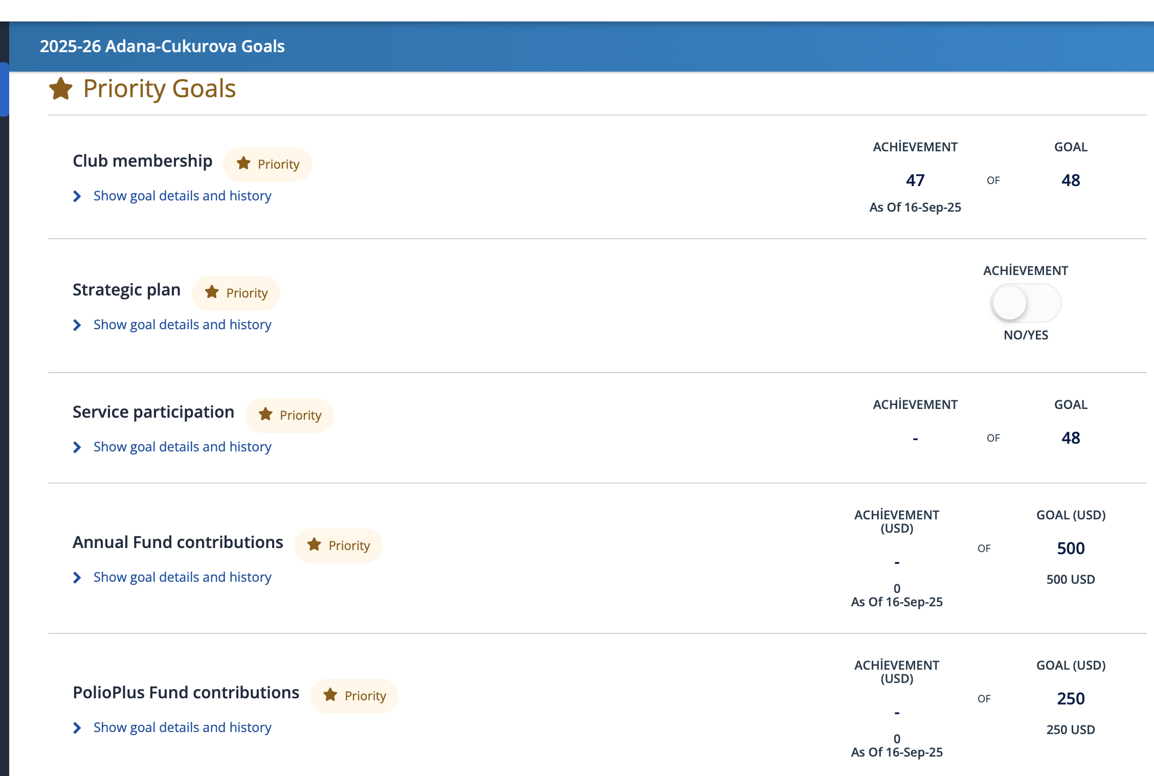 My Rotary Kulüp Hedeflerinin tamamlanması