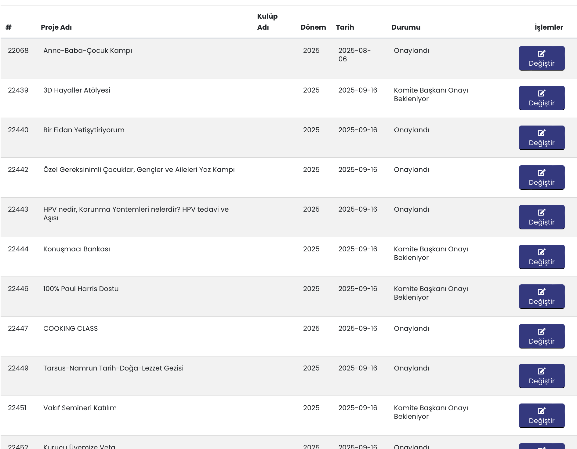 kulüp projelerinin bölge web sayfasına yüklenmesi