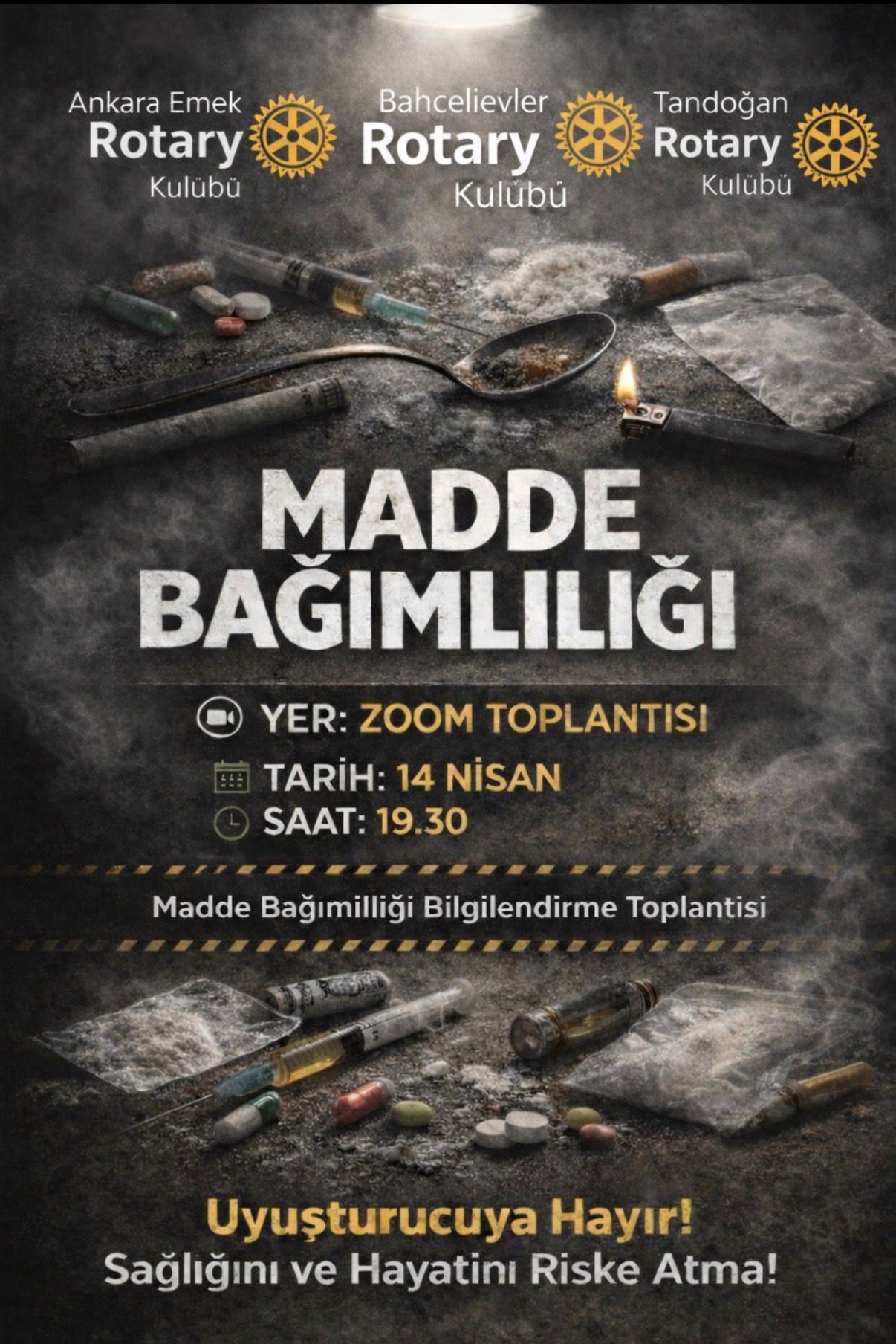 14 NİSAN AKŞAMI 4.GRUP KULÜPLERİ İLE ORTAK ZOOM TOPLANTISI İLE MADDE BAĞIMLILIĞI KONUSUNDA KONUŞMACI KONUĞUMUZU DİNLEYECEĞİZ.
