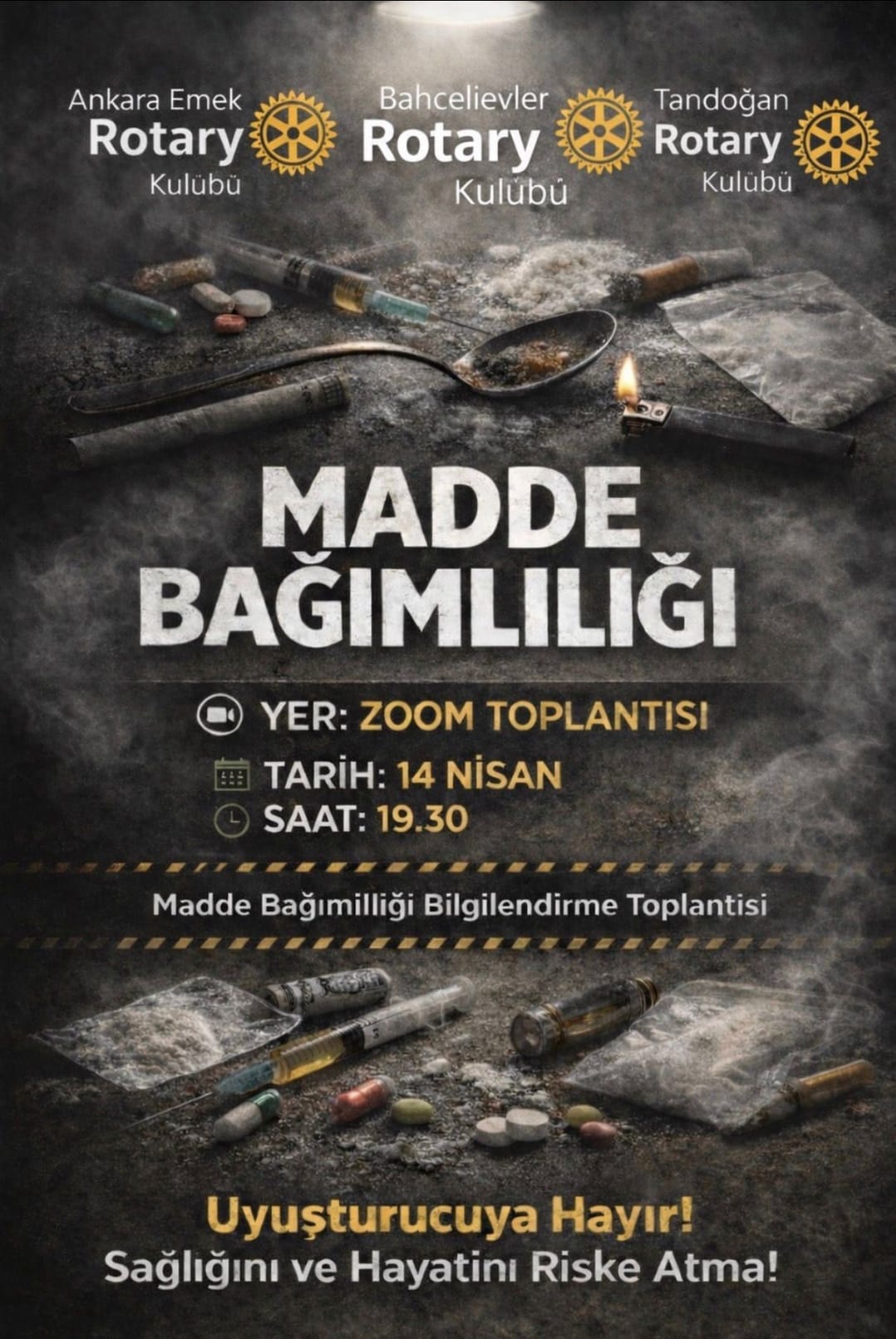 4. GRUP KULÜPLERİ İLE BİRLİKTE MADDE BAĞIMLILIĞI KONUSUNDA 14 NİSAN AKŞAMI BİR ZOOM TOPLANTISI ORGANİZE EDİLDİ. ANKARA EMEK+ANKARA BAHÇELİEVLER+ANKARA TANDOĞAN KULÜPLERİ GENÇLERİ VE AİLELERİ BİLGİLENDİRME EĞİTİMİ VERECEK