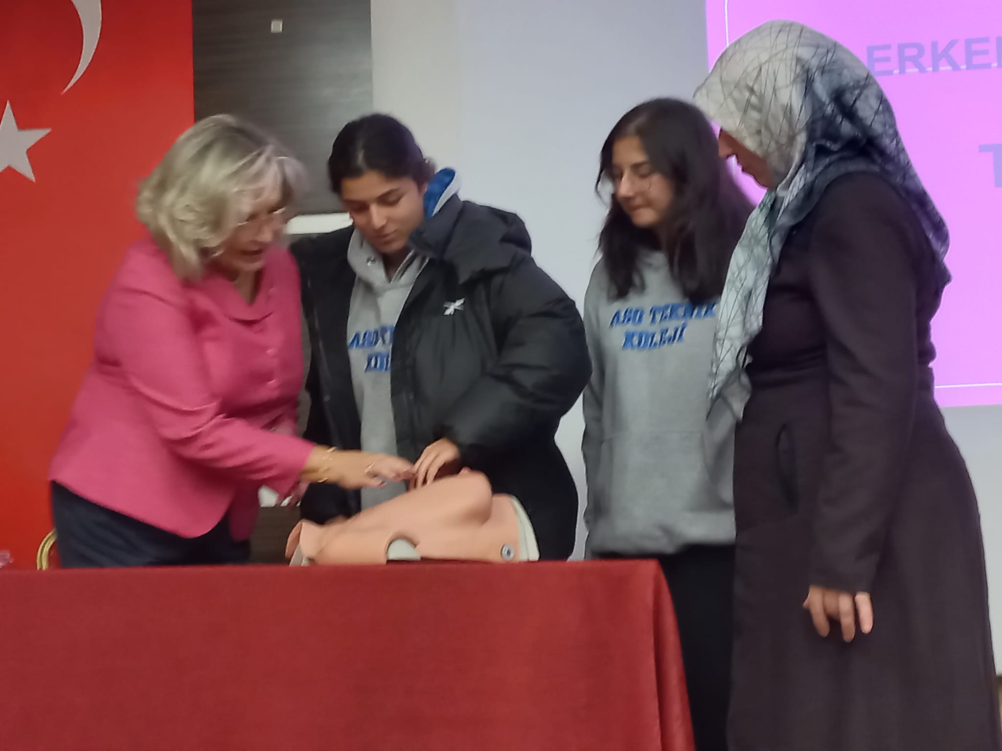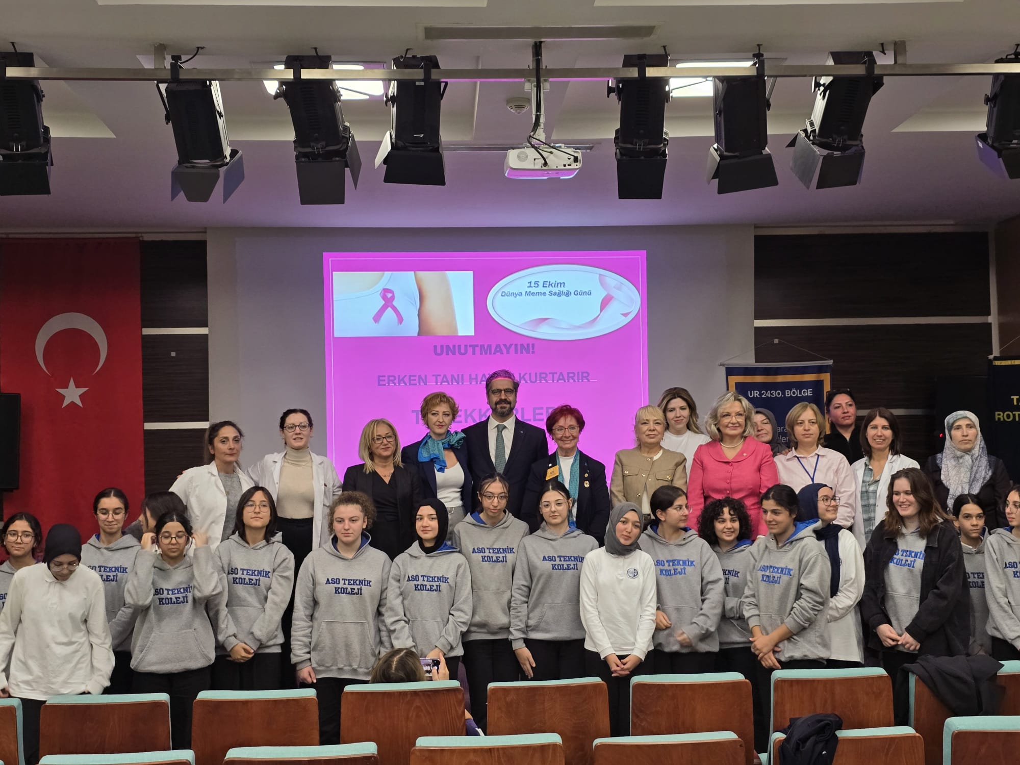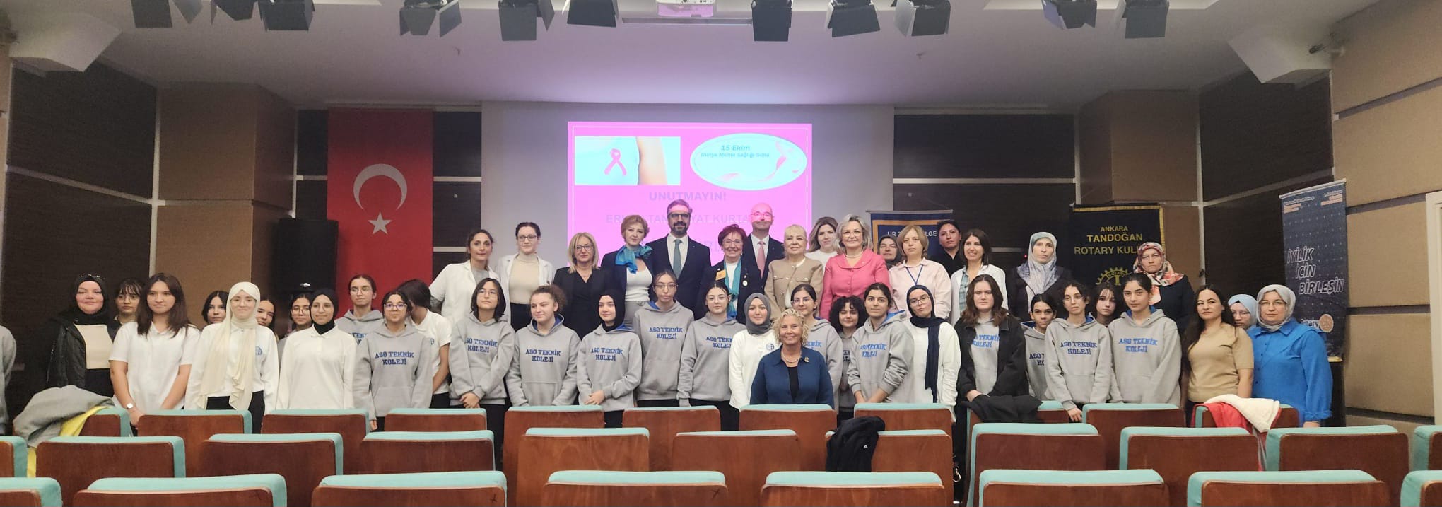 ERKUNT MESLEKİ EĞİTİM LİSESİ VELİLERİNE VE ASO TEKNİK KOLEJİ KIZ ÖĞRENCİLERİNE DOÇ.DR. FİSUN SÖZEN TARAFINDAN MEME KANSERİ FARKINDALIK EĞİTİMİ VERİLDİ. BU PROJEJİ BAHÇELİEVLER ROTARY KULÜBÜ İLE ORTAK YAPTIK.