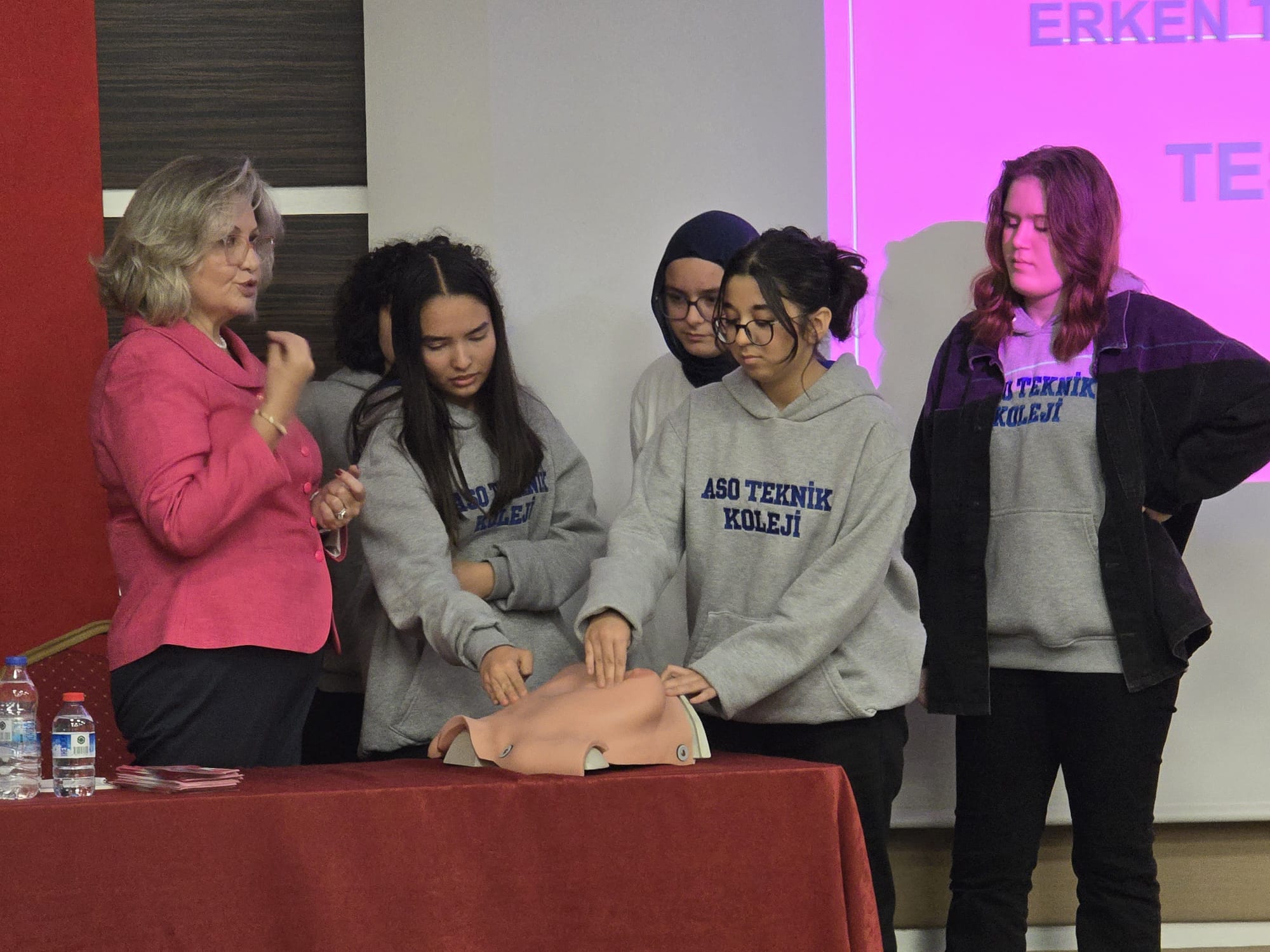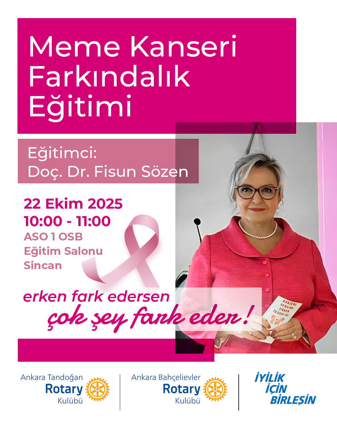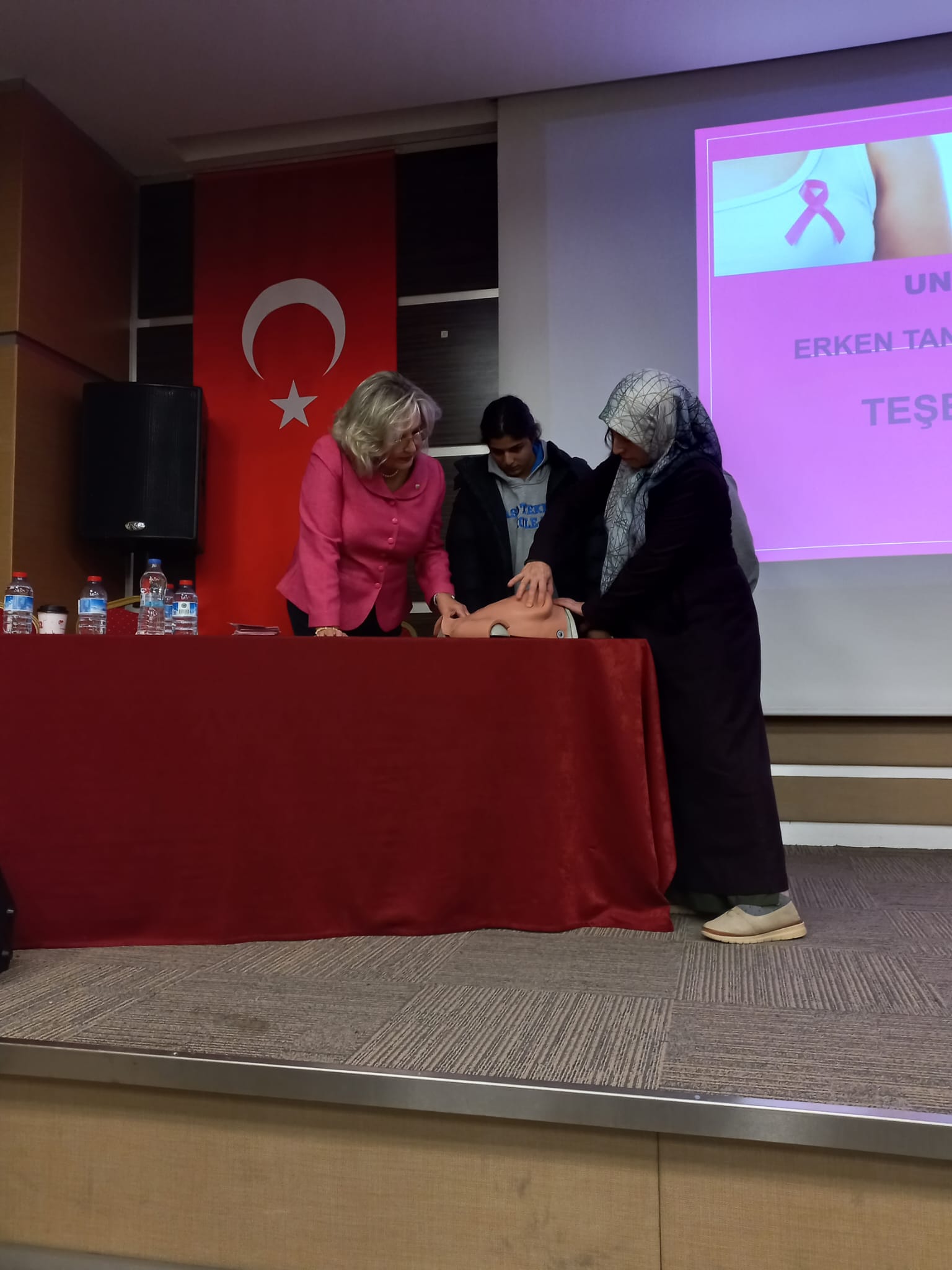 ERKUNT MESLEKİ EĞİTİM LİSESİ VELİLERİNE VE ASO TEKNİK KOLEJİ KIZ ÖĞRENCİLERİNE DOÇ.DR. FİSUN SÖZEN TARAFINDAN MEME KANSERİ FARKINDALIK EĞİTİMİ VERİLDİ. BU PROJEJİ BAHÇELİEVLER ROTARY KULÜBÜ İLE ORTAK YAPTIK.