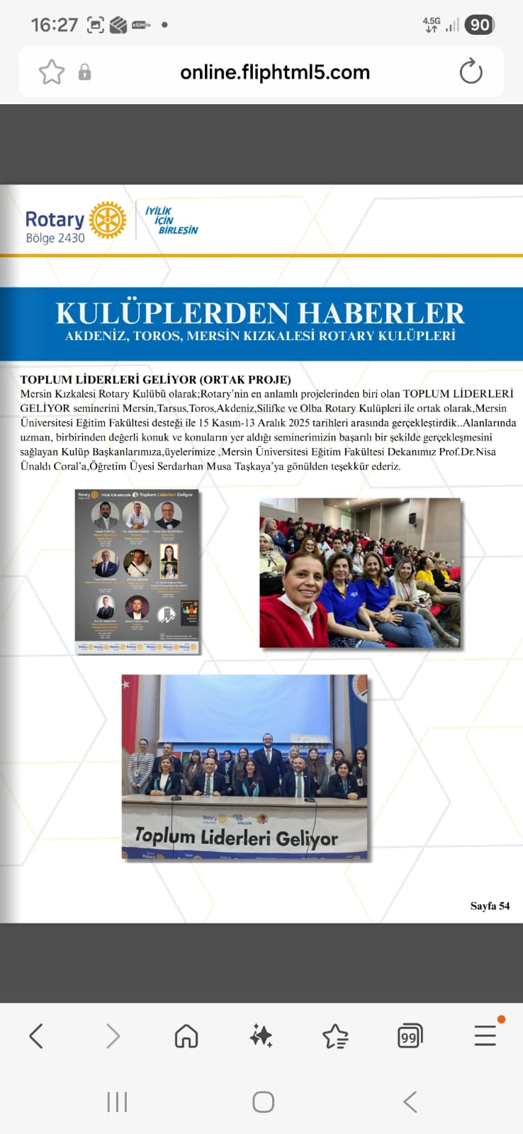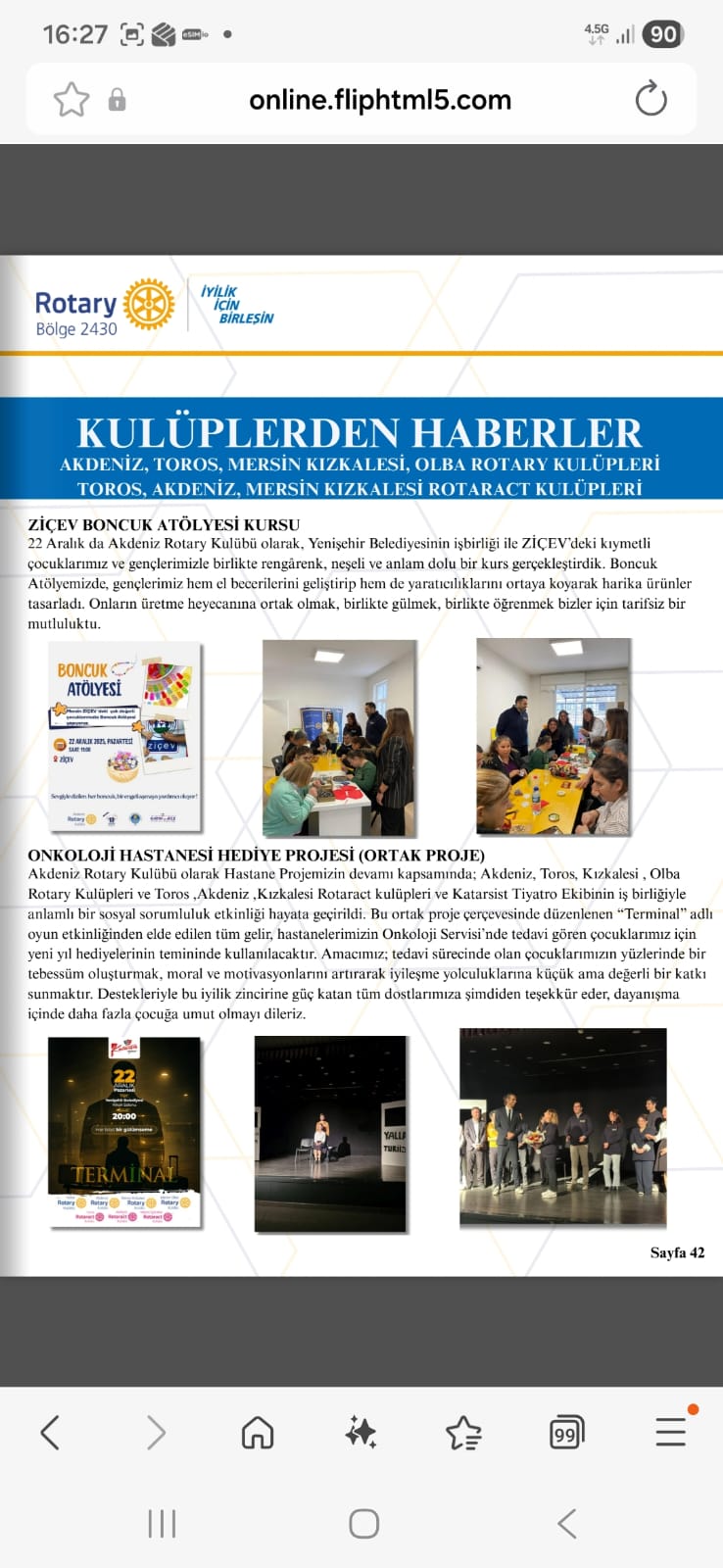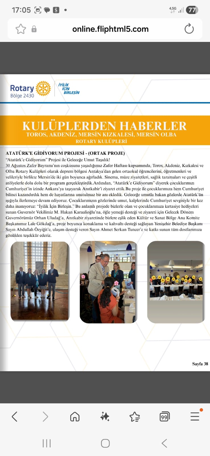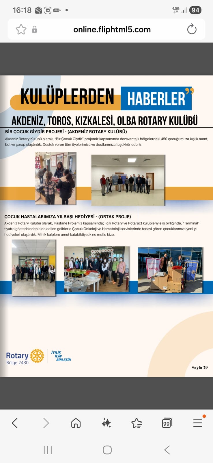 MERSİN KIZKALESİ ROTARY KULÜBÜ GUVERNÖR AYLIK MEKTUBUNDA YAYINLANAN PROJELER