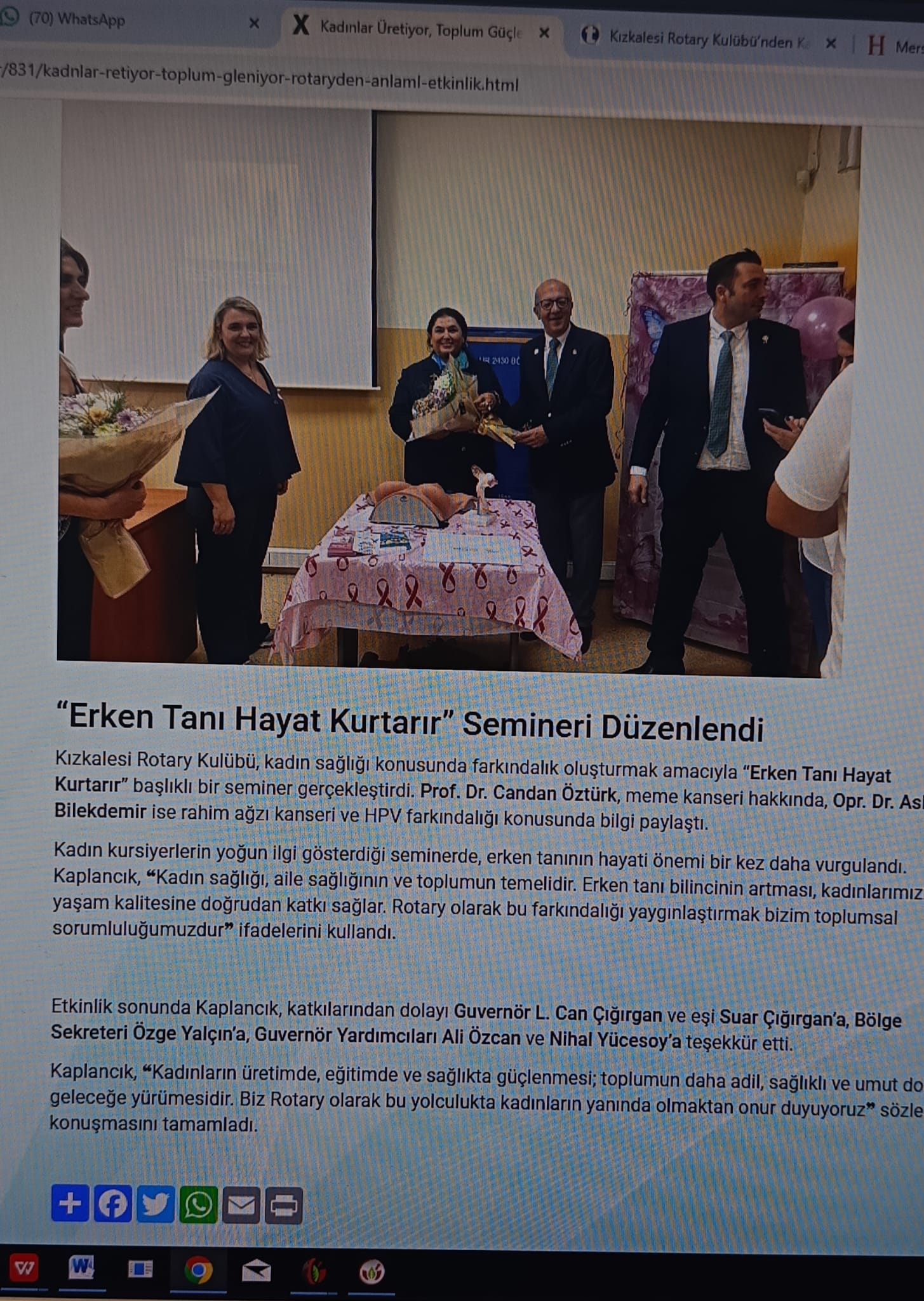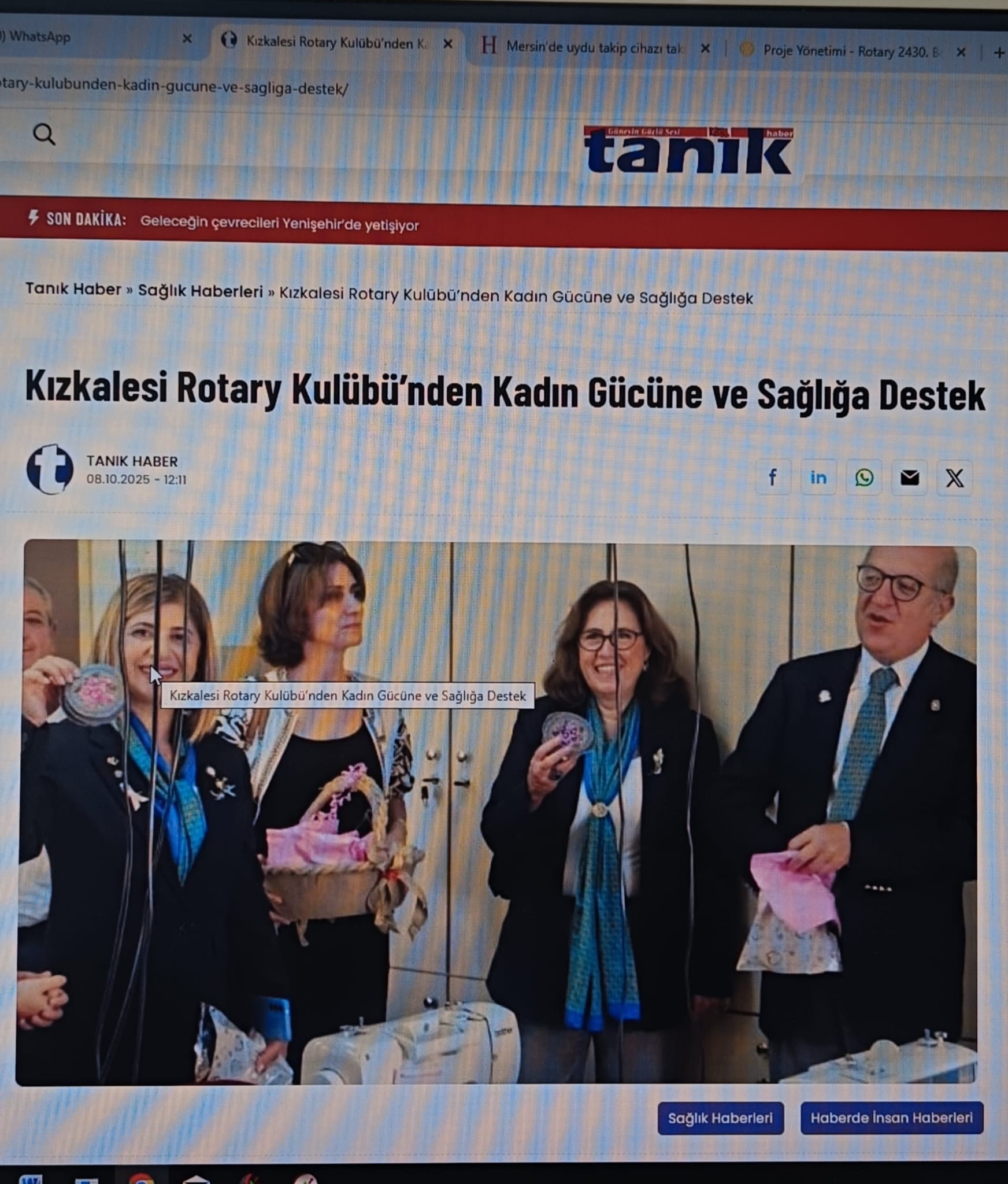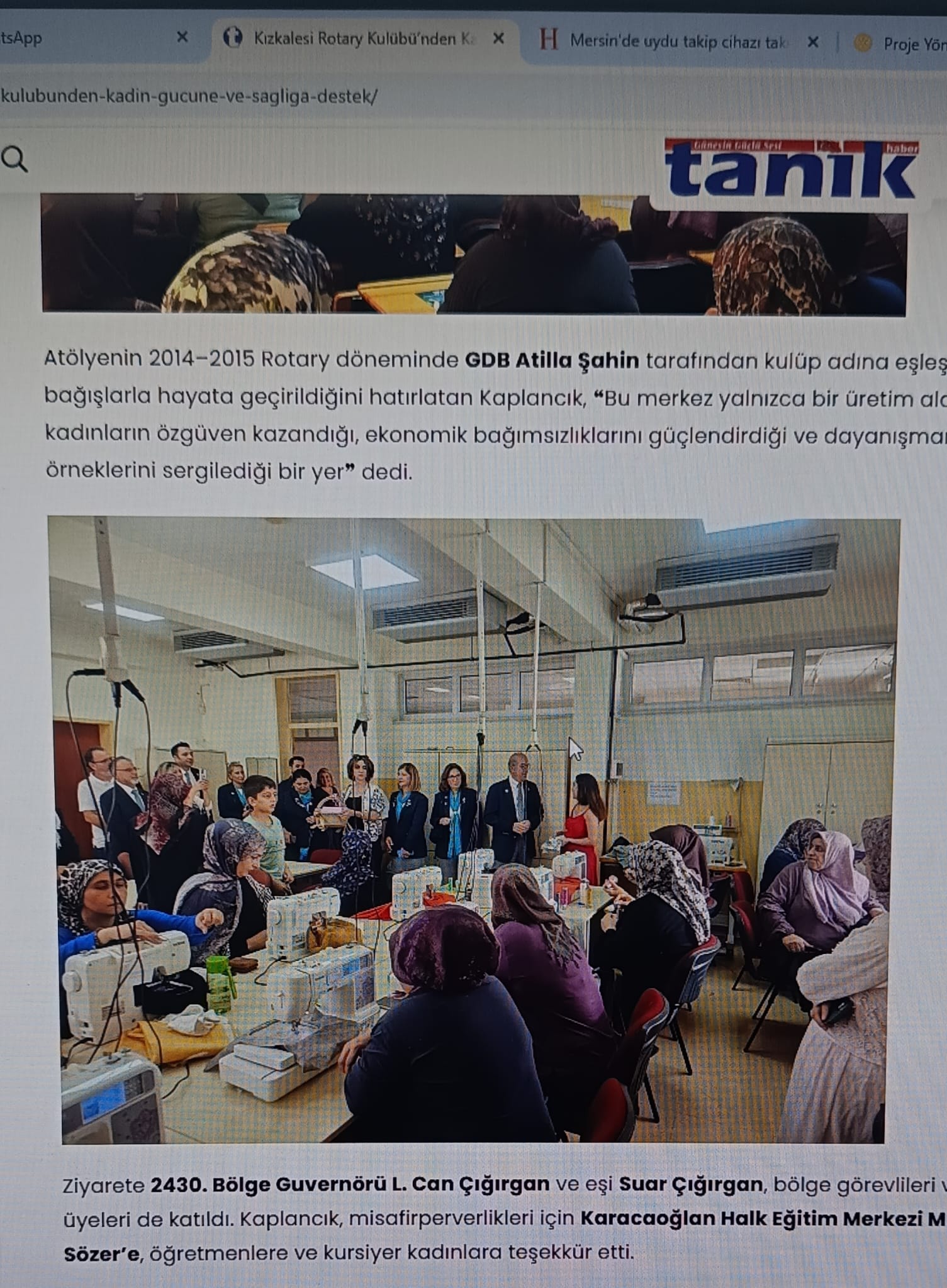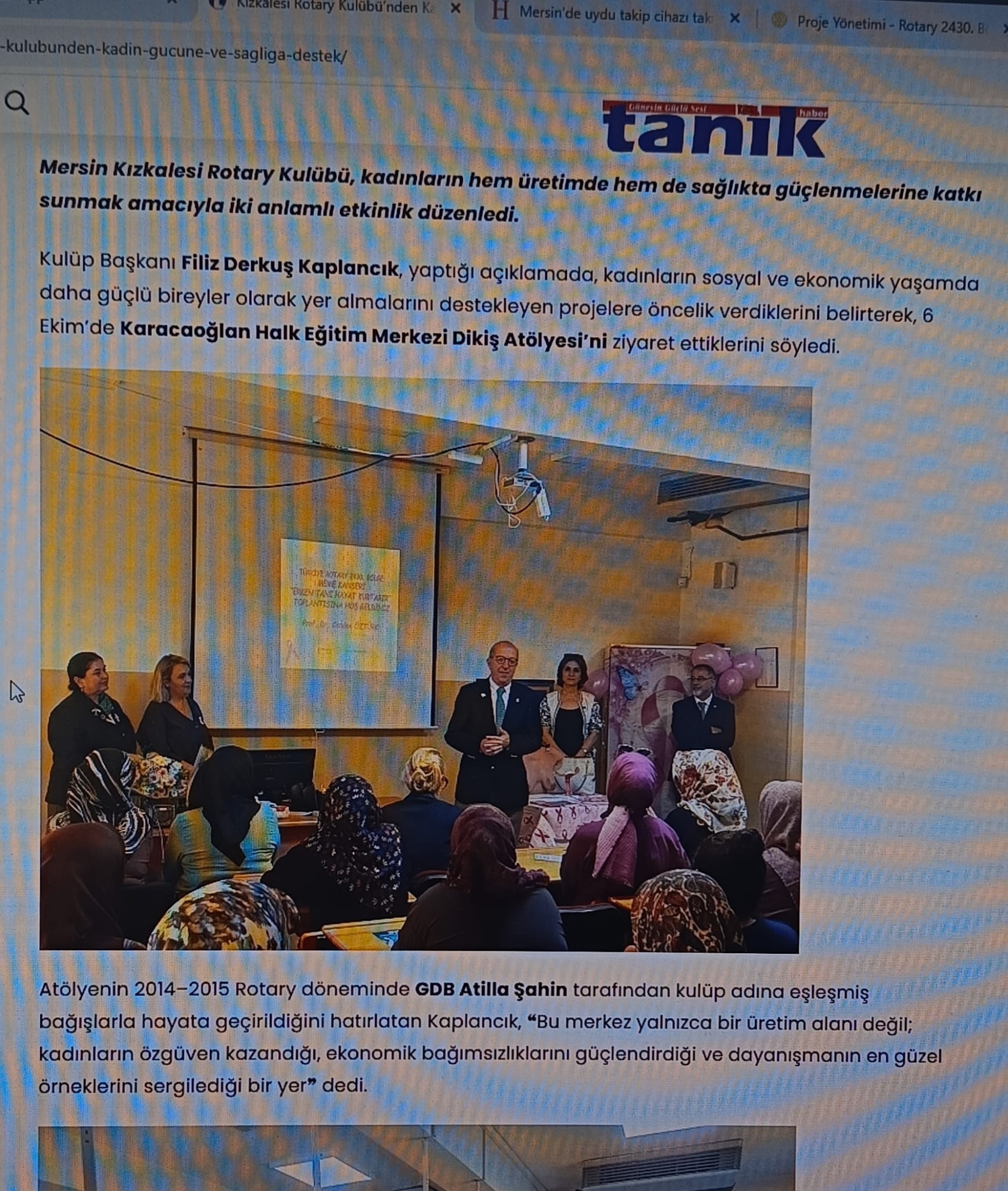 4-Mersin Kızkalesi Rotary Kulübü olarak 26–27 Kasım tarihlerinde Ev Kadınları Ufuk Geliştirme Projesi (EVKA) Mersin Büyükşehir Belediyesi tarafından 28 Kasım da Mersin Web TV de yayınlanmıştır.