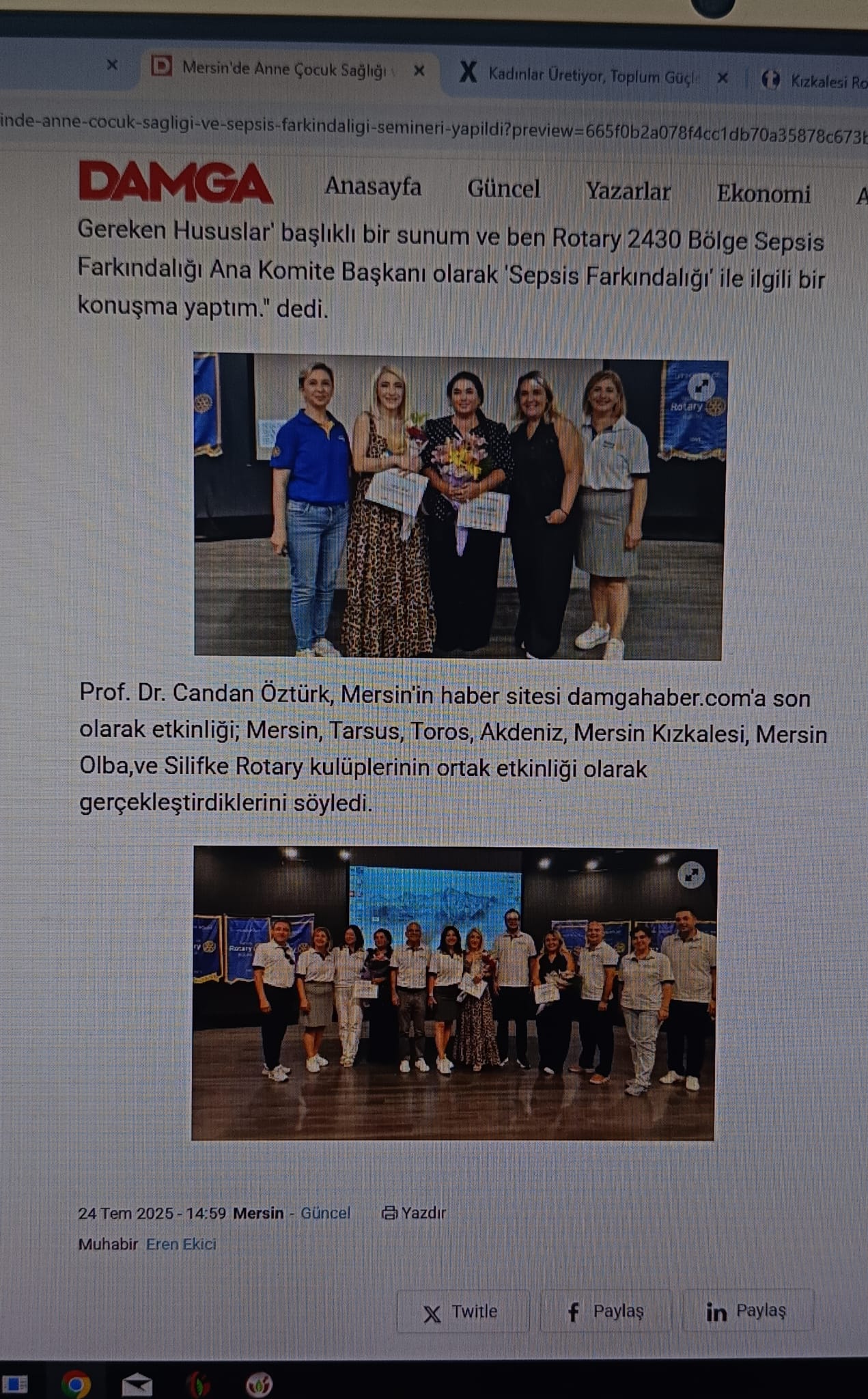MERSİN KIZKALESİ ROTARY KULÜP PROJELERİ VE HABERLERİNİN YEREL MEDYADA YER ALMASI