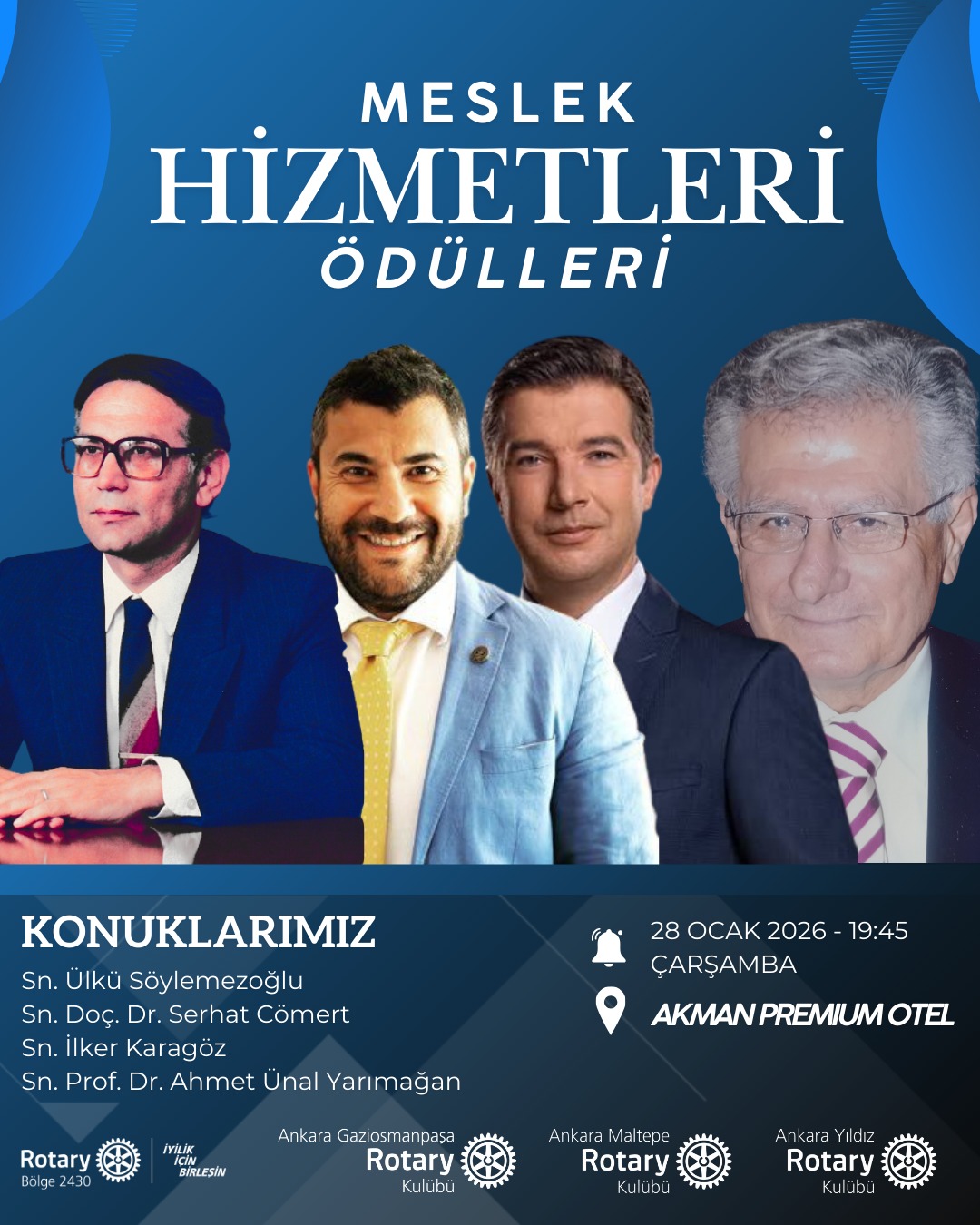 Ankara Gaziosmanpaşa Rotary Kulübü ve Ankara Yıldız Rotary kulübüyle ortaklaşa meslek hizmet ödülümüzü bu sene Doç Dr Serhat Cömert ve İlker Karagöz takdim ettik.