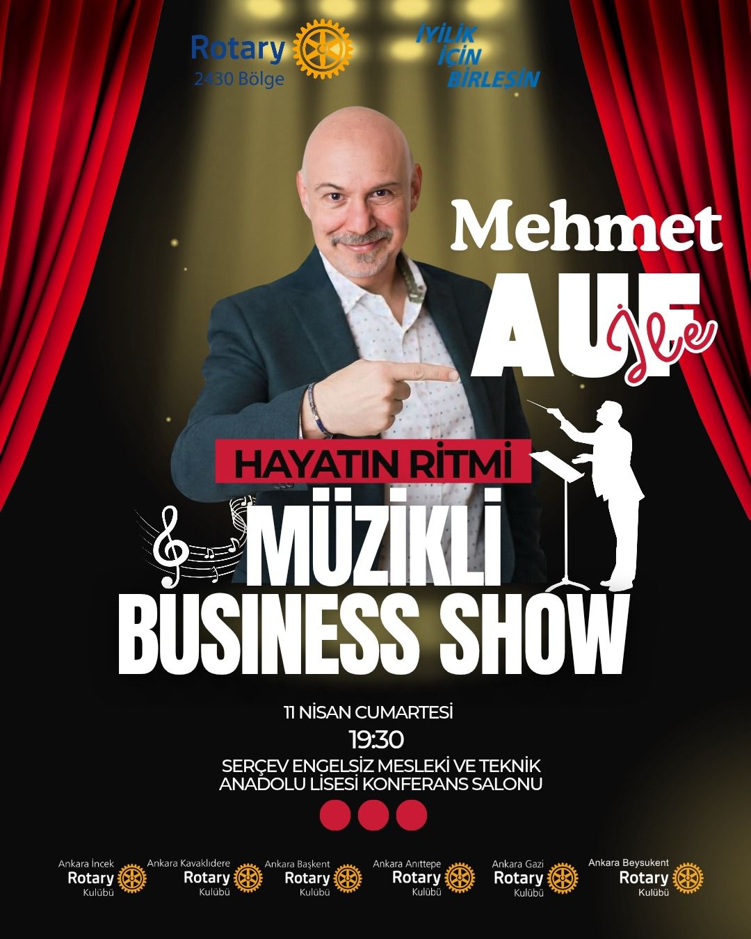 11 Nisan'da Ankara İncek, Ankara Kavaklıdere, Ankara Başkent, Ankara Anıttepe, Ankara Gazi ve Ankara Beysukent Rotary Kulüpleri olarak gerçekleştireceğimiz Mehmet Auf ile Müzikli Business Show'dan elde edilecek gelir, SERÇEV Engelsiz Mesleki ve Teknik Anadolu Lisesi'nde serebral palsili öğrenciler, gençler ve aileleri için dikiş atölyesi açılmasında kullanılacaktır. Dikiş atölyesi, serebral palsili bireylerin hem el kol koordinasyonunu geliştirecek, kaslarını çalıştırmalarında fayda sağlayacak, hem de üç boyutlu görme, düşünme, renk algısı konularında gelişim sağlayacaktır.