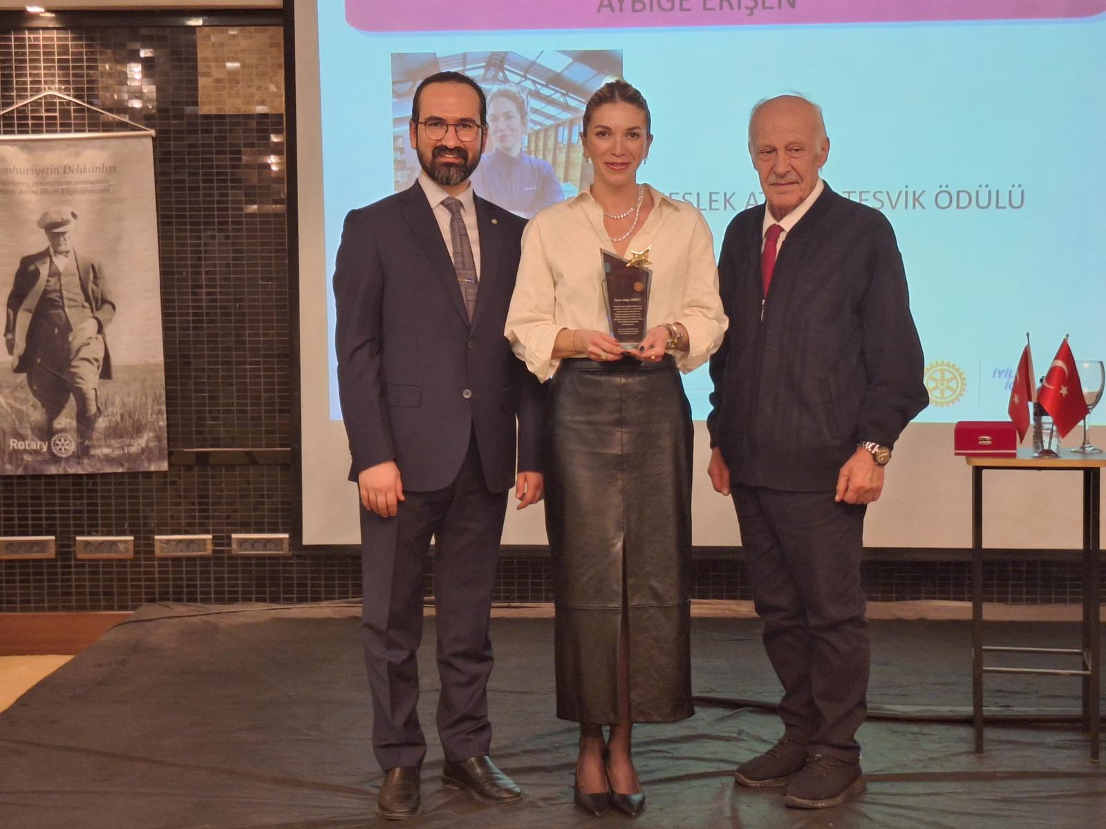 Kulübümüz meslek hizmetleri teşvik ödülünü Ayone Çiftliği sahibi ve şefi olan Aybige Erişen 'e takdim etmiştir.