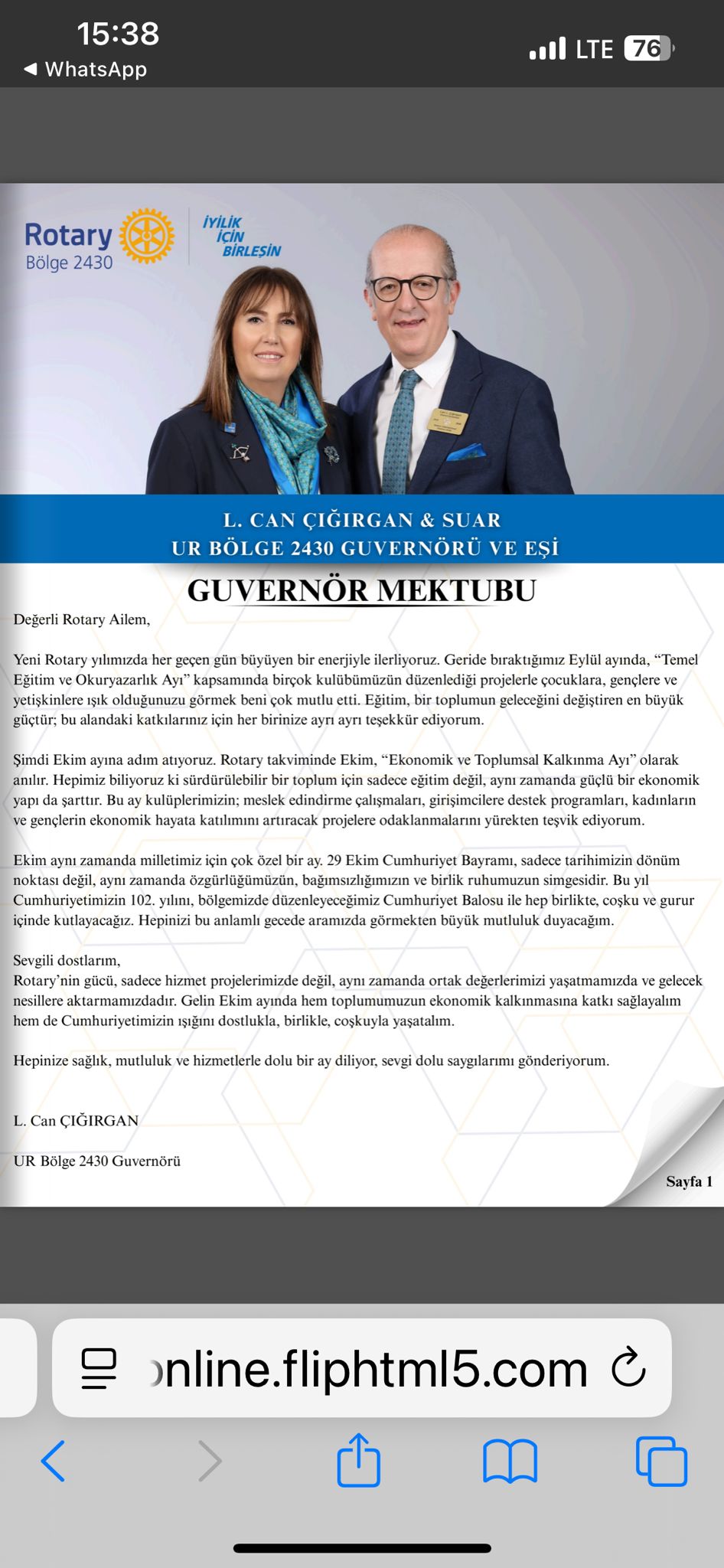 Kulüp Hzmetleri,Bülten ve Dergi maddesi B bendi kapsamında Eylül Ayı Bölge Bültenindeki Guvernör Mektubunu ve Kulübümüz ile ilgili haberi Eylül Ayı mutad toplantımızda okuduk.