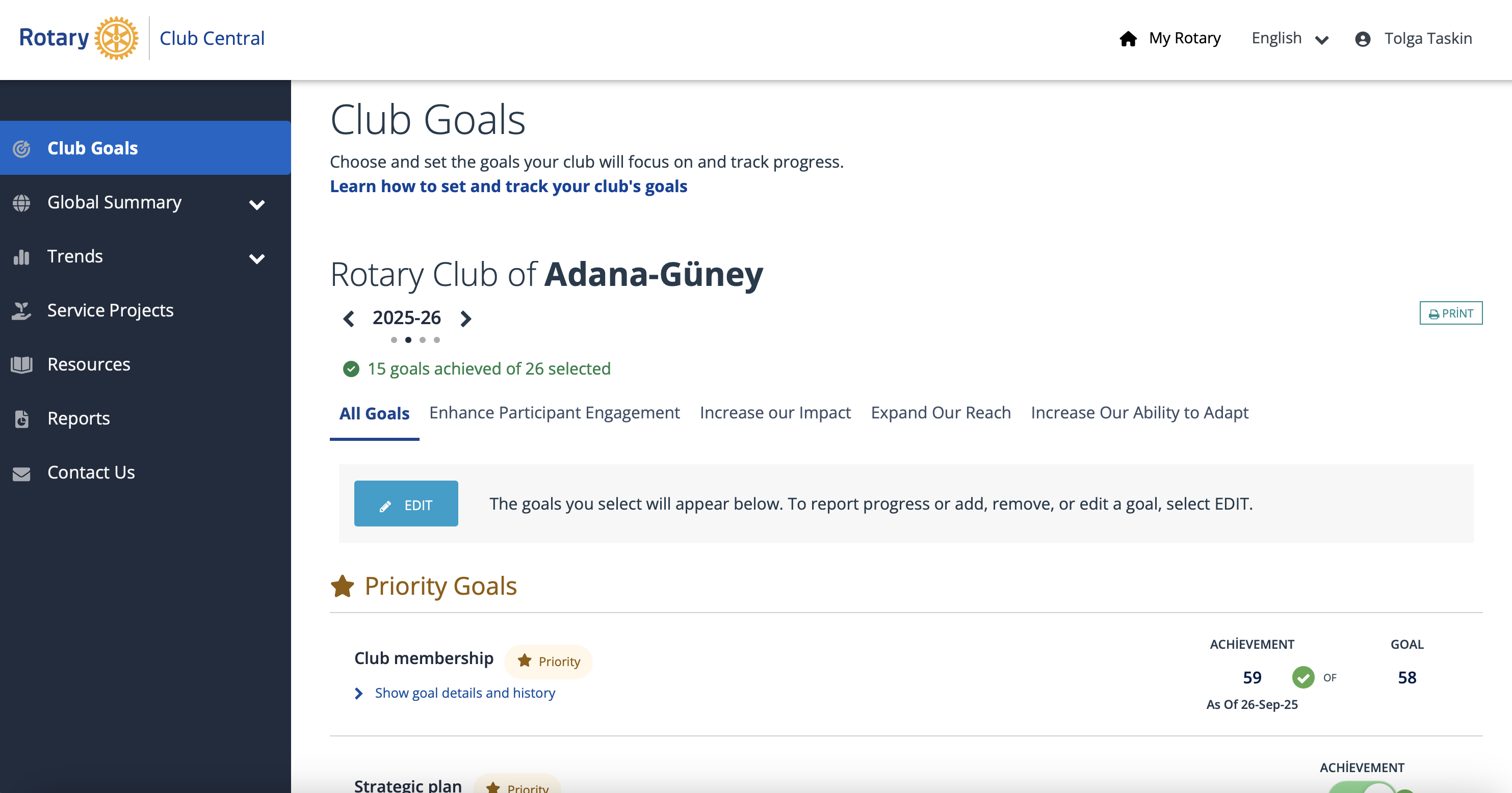 Adana Güney Rotary Kulübü için 1 Temmuz 2025 itibariyle My Rotary 'ye Kulüp hedeflerimizi girdik.
