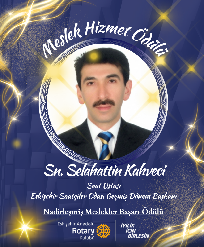 2026 yılı Rotary Meslek Hizmetleri ödül törenimizi Eskişehir Kulüplerinden Anadolu ve Gordion Rotary Kulüpleri ile ortak olarak gerçekleştirdik. Bu anlamlı gecede dört kategoride ikişer ödül verildi. Geceye katılarak bizleri onurlandıran Sayın Vekilimiz İbrahim Arslan ve sevgili eşi Semra hanım, Sayın Odunpazarı Belediye Başkanımız Av.Kazım Kurt, kurucu başkanlarımızdan Rtn. Taner Alkara ve Rtn. Hulusi Zaim Buyan ödülleri sahiplerine takdim etmişlerdir. Nadirleşmiş Meslekler Ödülü - Saat Ustası Sn.Selahattin Kahveci