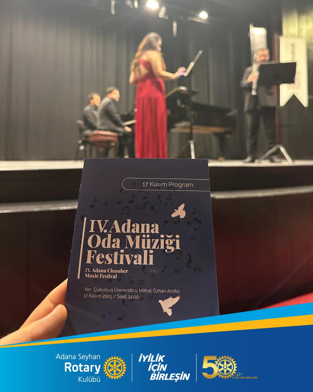 Adana Seyhan Rotary Kulübü olarak, 12–16 Kasım tarihlerinde Adana’da düzenlenen 4. Oda Müziği Festivali’ne hem sponsor olduk hem de katılım sağladık. Çok emek ve özveri gerektiren festival için sanatçılar dünyanın farklı ülkelerinden Adana’ya gelerek sanatlarını icra ettiler. Her sene olduğu gibi bu sene de Rotary Kulüpleri olarak sponsorluk desteğimiz devam etti.