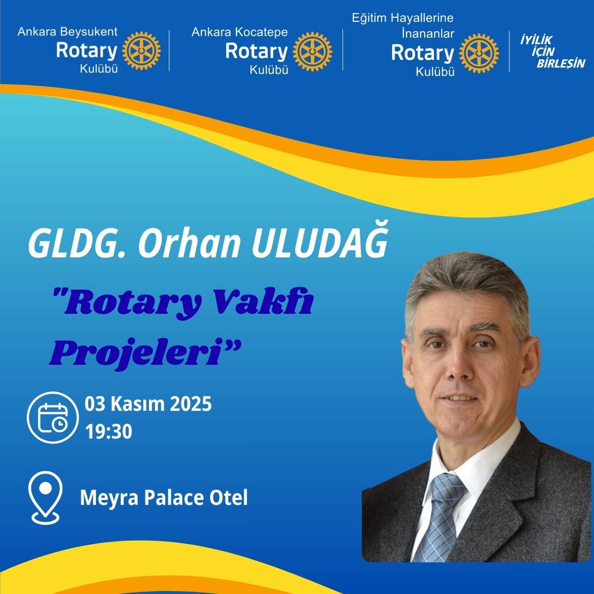 Bölge konuşmacı bankasından GLDG. Orhan Uluda'ın konuşmacı olduğu toplantıyı Ankara Beysukent ve Eğitim Hayaline İnananlar Rotary Kulüpleri ile birlikte gerçekleştirdik. Rotary Vakıf Projelerini dinledik.