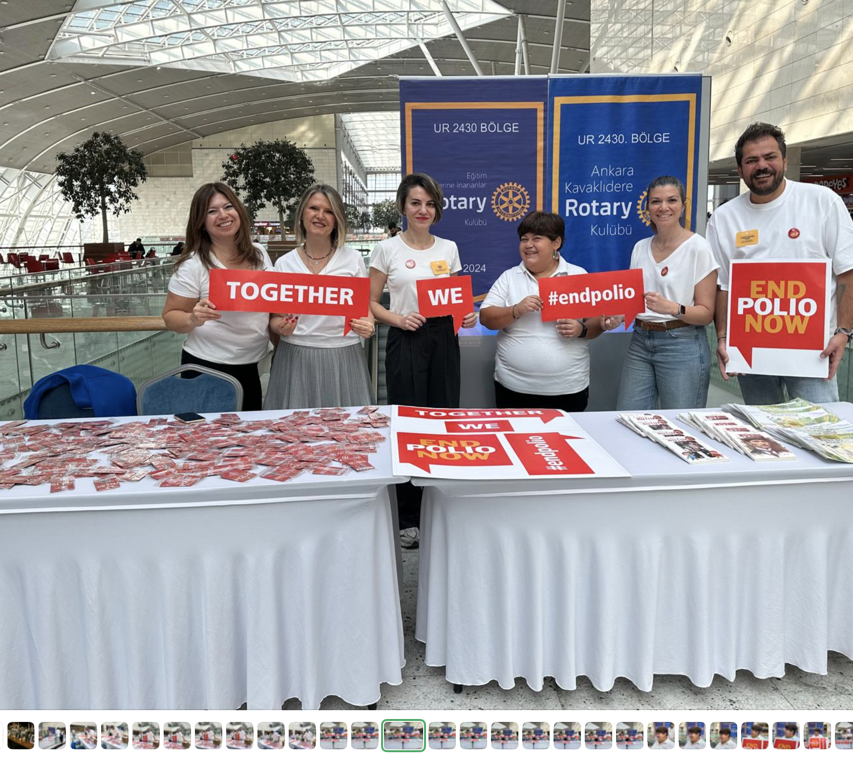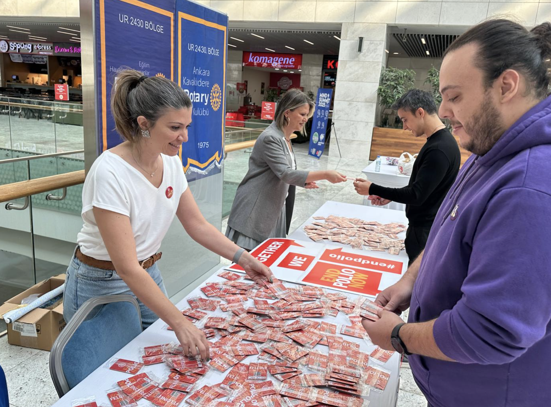 ANKARA KAVAKLIDERE ROTARY KULÜBÜ OLARAK POLİO FARKINDALIĞI İÇİN EĞİTİM HAYALLERİNE İNANANLAR ROTARY KULÜBÜ İLE BİRLİKTE POLİO İLE İLGİLİ BİLGİLENDİRİCİ BROŞÜRLERE VE WEB SİTESİNE YÖNLENDİREN 1000 ADET ARAÇ KOKUSU BASTIRARAK FARKLI TARİHLERDE ANKARA TREN GARI VE ONE TOVER AVM DE STANT AÇARAK 2000 KİŞİNİN ÜZERİNDE BİR FARKINDALIK YARATTIK.