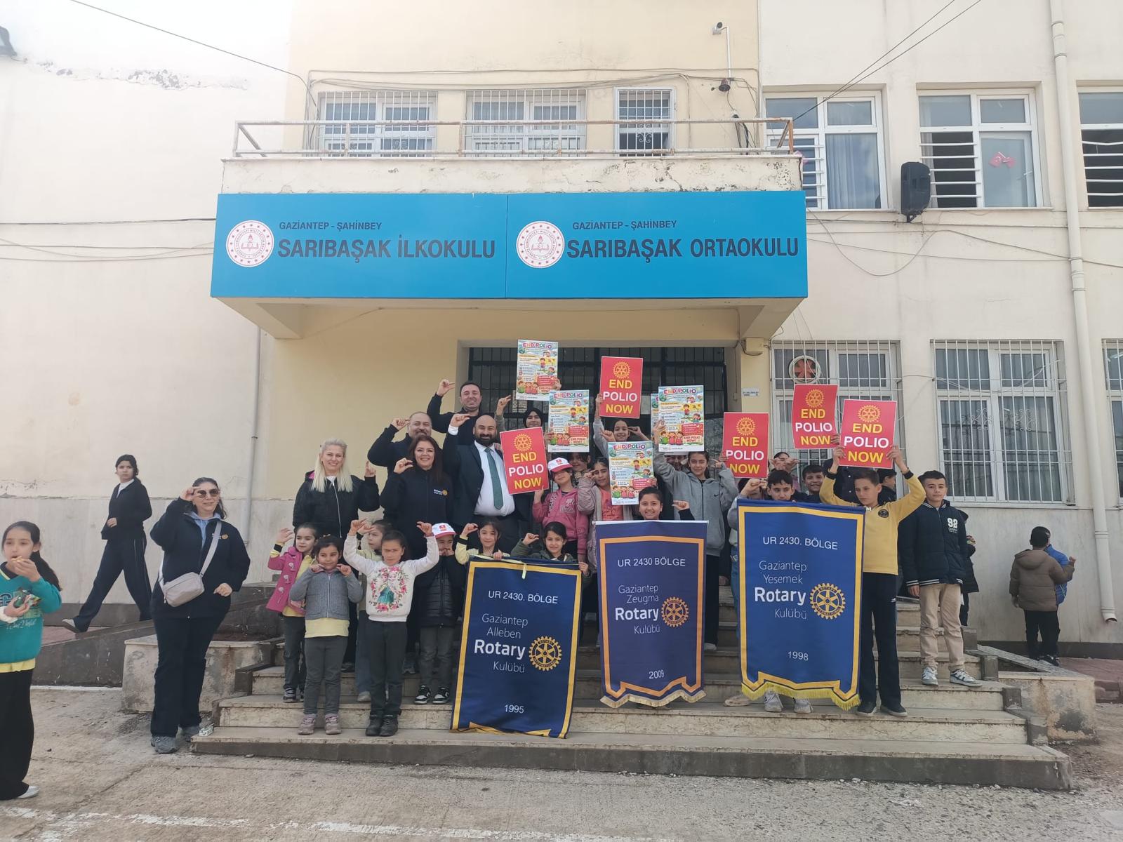 01.04.2026 tarihinde Gaziantep Sarıbaşak Köyü İlkokulu ve Ortaokulu’nda, Gaziantep Alleben, Yesemek ve Zeugma Rotary Kulüpleri iş birliğiyle gerçekleştirdiğimiz Polio farkındalığı kapsamında; okuldaki öğrencilerle polio son dedik.