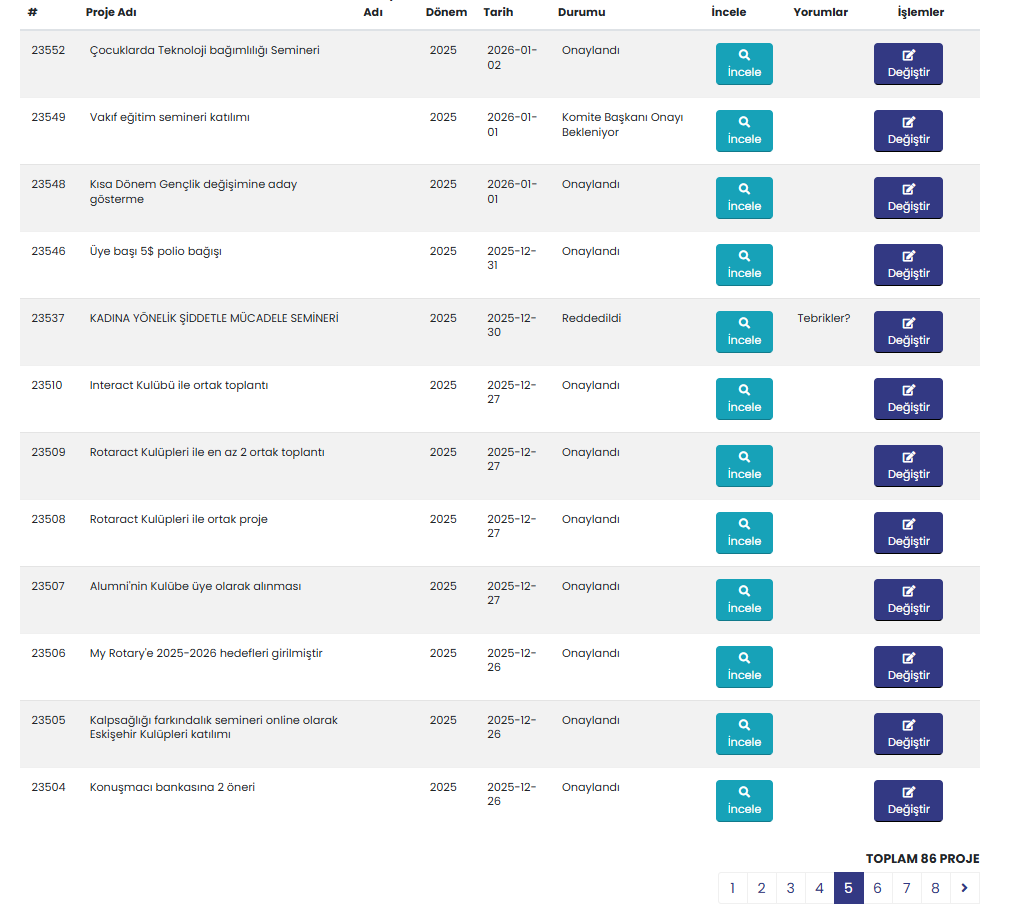 Eskişehir Anadolu Rotary Kulübü TÜM PROJELERİ