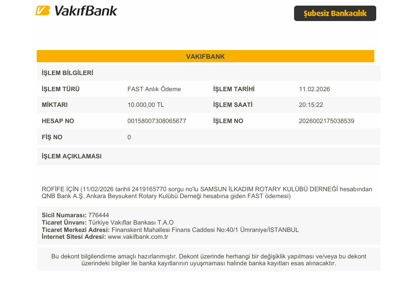 ROFİFE' YE 10.000 TL BAĞIŞTA BULUNDUK.
